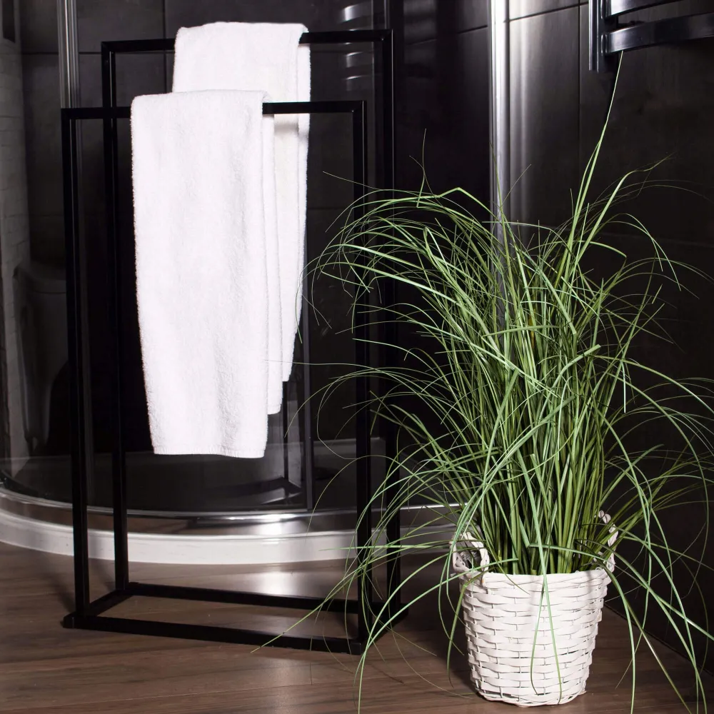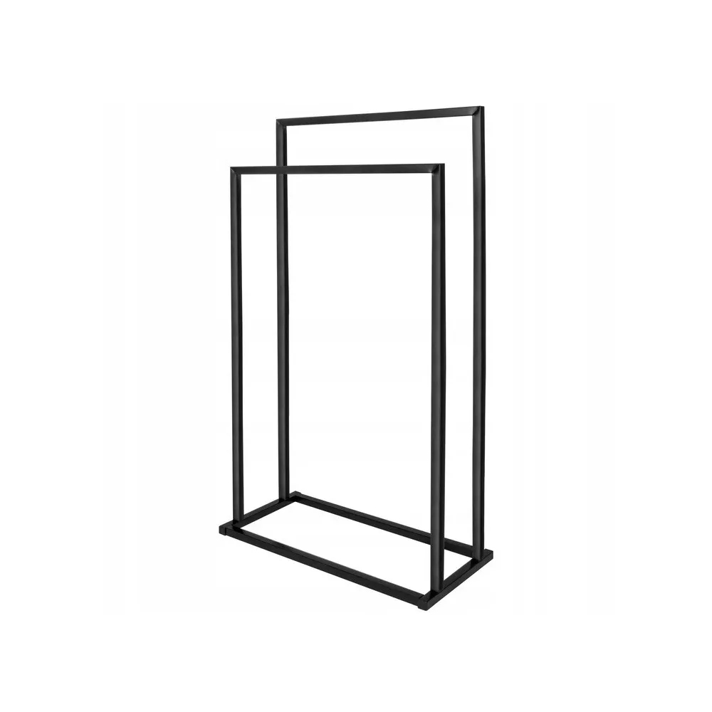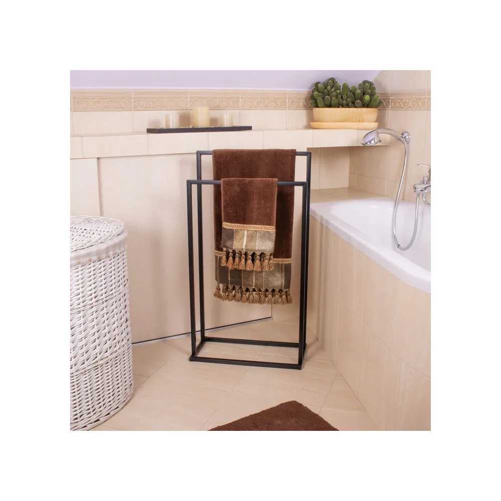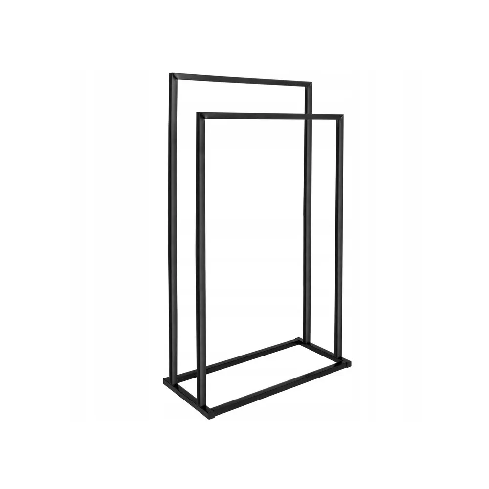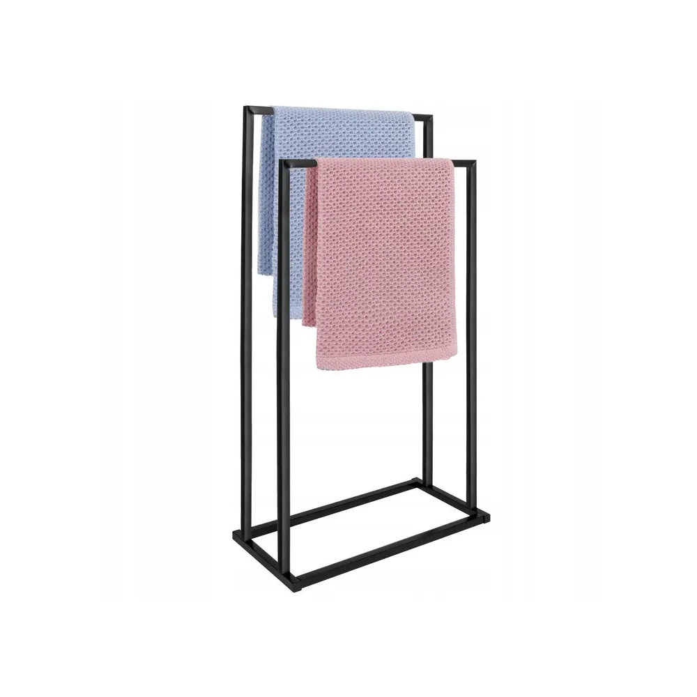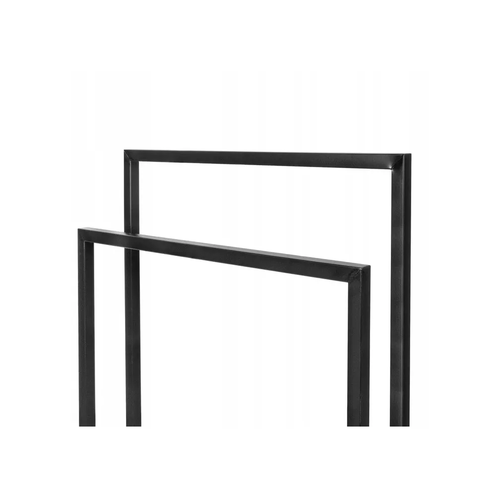 Základňa vešiaka na uteráky je veľmi stabilná . Široký rám v čiernej farbe sa hodí do každej domácnosti. Je vyrobený z odolného lakovaného kovu a dodáva výrobku eleganciu .