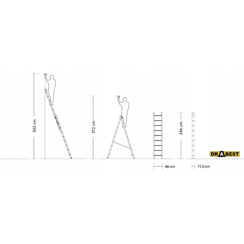 Hliníkový rebrík 2x11 priečok dvojdielny DRABEST DW2-11 PRO