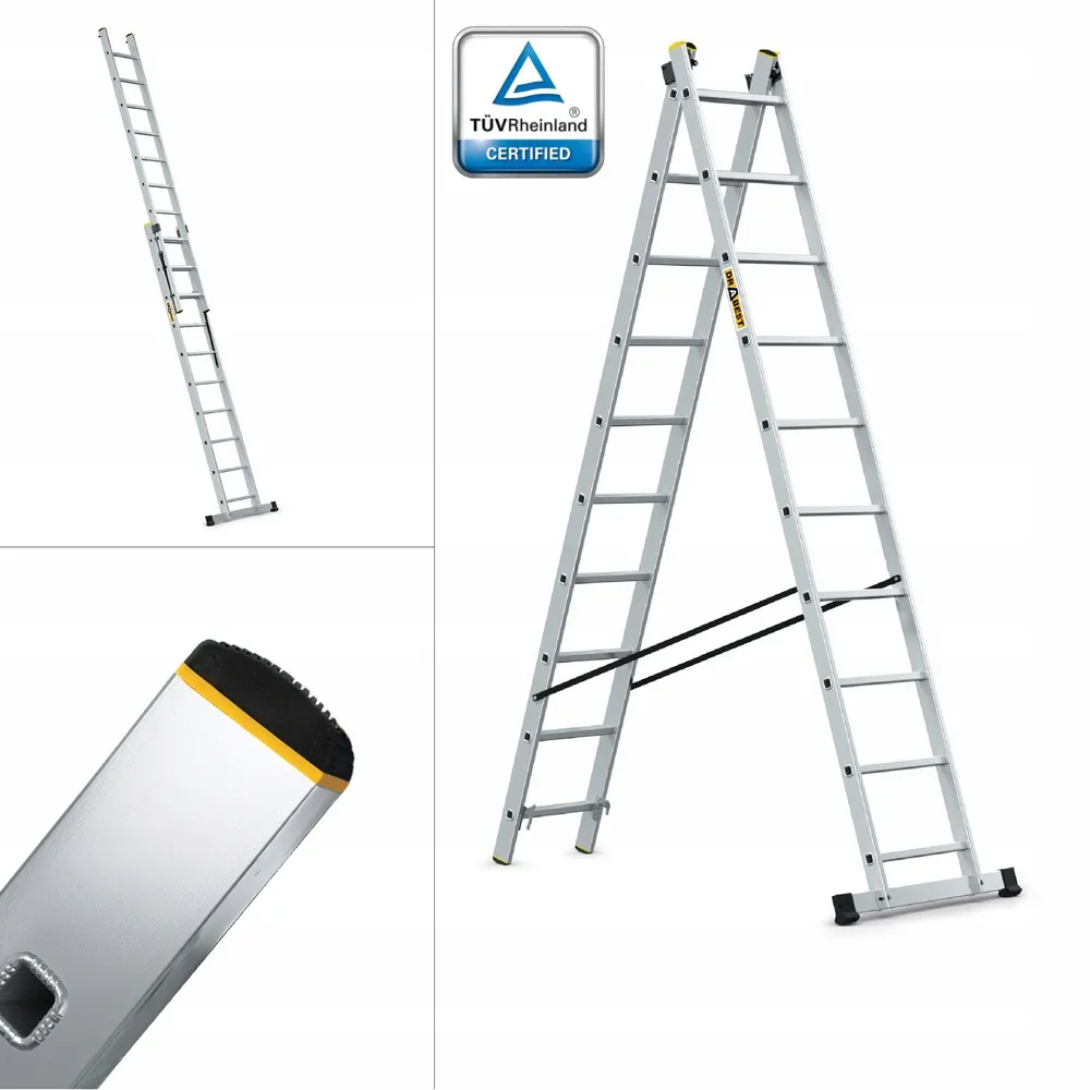 Hliníkový rebrík DRABEST DW2-10 PRO je vhodný na každodenné intenzívne používanie v priemysle, na stavbe a ďalších náročných odboroch vyžadujúcich nekompromisnú kvalitu. Rebrík spĺňa prísne bezpečnostné normy podľa EN 131 a je certifikovaný nemeckou skúšobňou TÜV Rheinland.