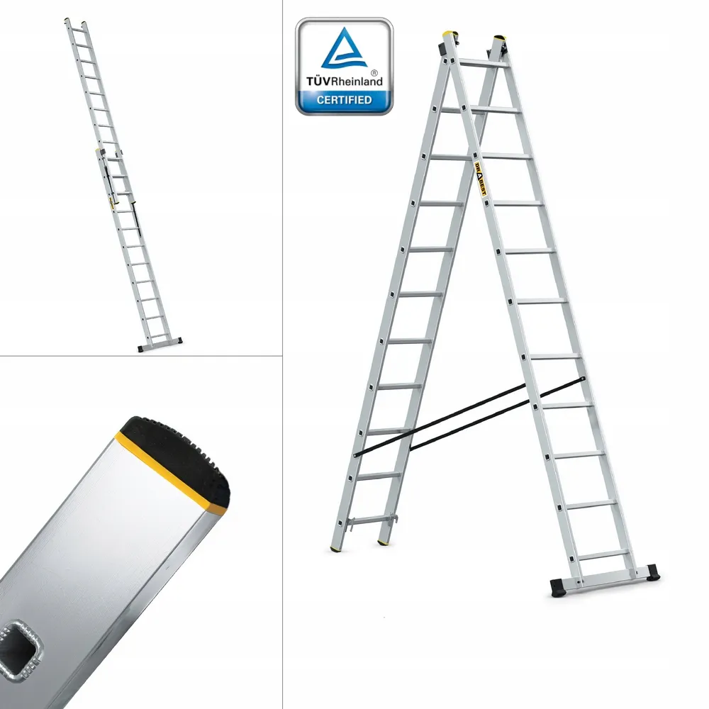 Hliníkový rebrík 2x13 priečok dvojdielny DRABEST DW2-13 PRO