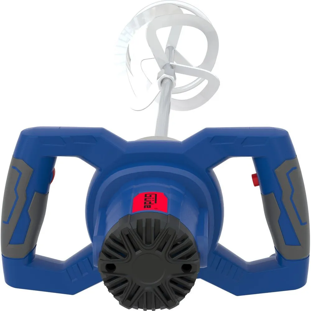 Výkonné miešadlo na miešanie práškových stavebných materiálov. Vysoký komfort pri práci vďaka ergonomickému telesu, pogumovaná rukoväť na pohodlnú a bezpečnú prácu. Elektronická regulácia otáčok v rukoväti, robustná kovová prevodová skrinka s dlhou životnosťou, zapínač/vypínač. V balení sa nachádza motorová jednotka, miešací nadstavec na hrubé stavebné materiály ako malta, omietka alebo lepidlo.
