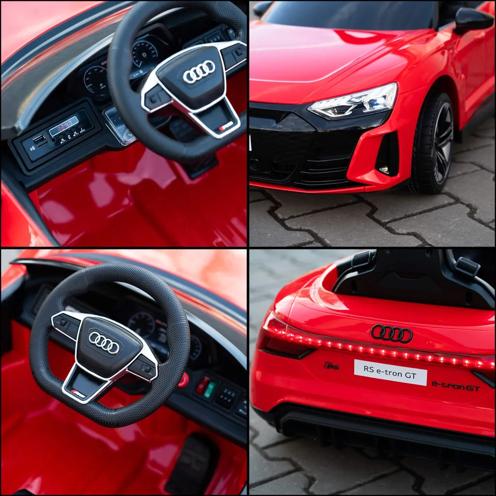 Detské elektrické auto SPRINGOS AUDI RS e-tron GT 4x4 prináša malým vodičom jedinečný zážitok z jazdy v štýle športového vozidla. Vďaka realistickému vzhľadu športiaku pôsobí ako skutočné auto a upúta pozornosť svojim detailným prevedením. Elektrický pohon na všetky kolesá zaisťuje plynulú a bezpečnú jazdu, zatiaľ čo kožené sedadlo s 3 bodovým bezpečnostným pásom poskytuje maximálny komfort a ochranu dieťaťa počas jazdy.
