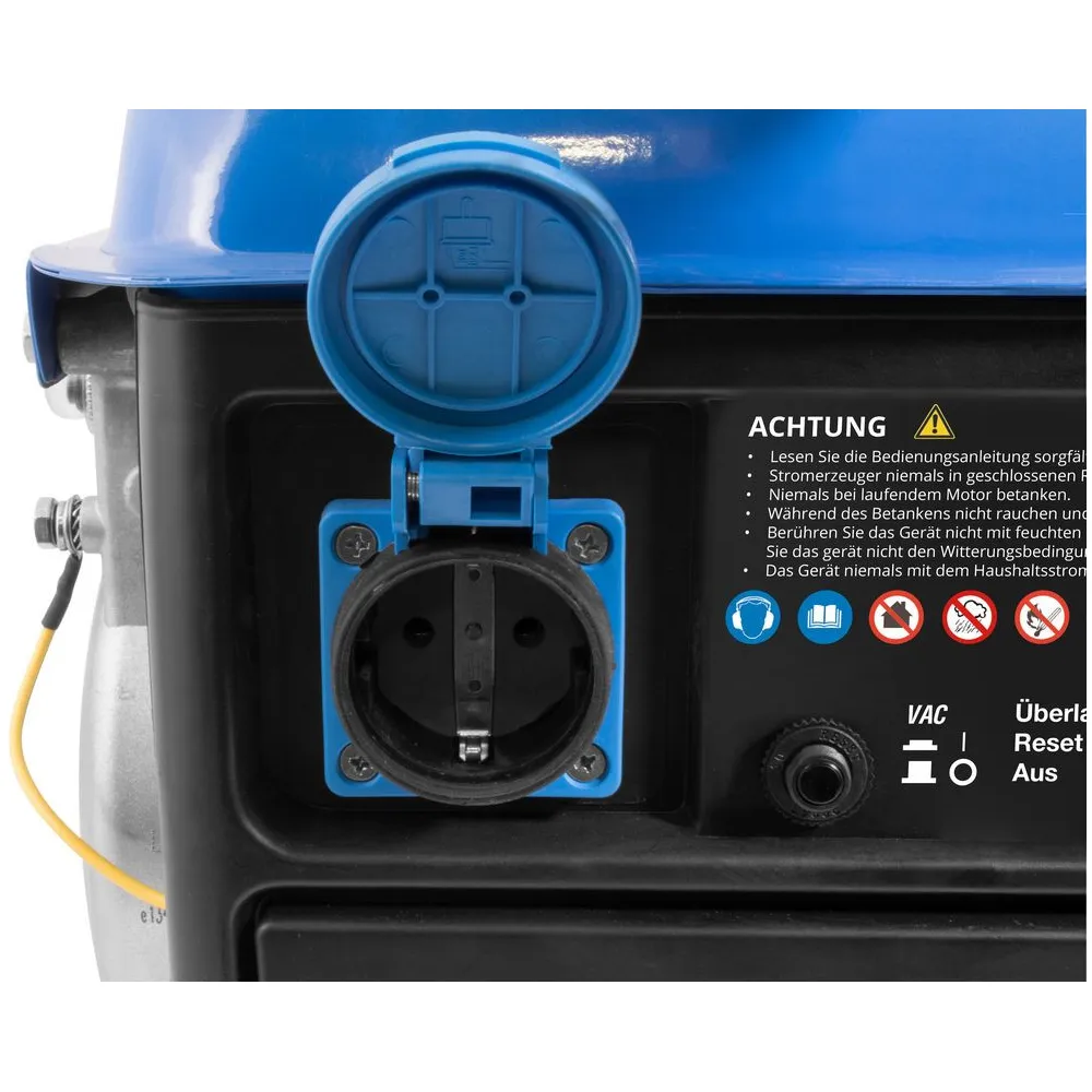 Elektrocentrála s 2-taktným synchrónnym generátorom, 1 x Schuko 230 V/50 Hz, praktická rukoväť, antivibračné gumené nožičky, reverzný štartér, ochrana proti preťaženiu. Tento generátor nie je vhodný na prevádzku elektronicky citlivých prístrojov, ako sú notebooky, chytré telefóny alebo zvukové systémy.