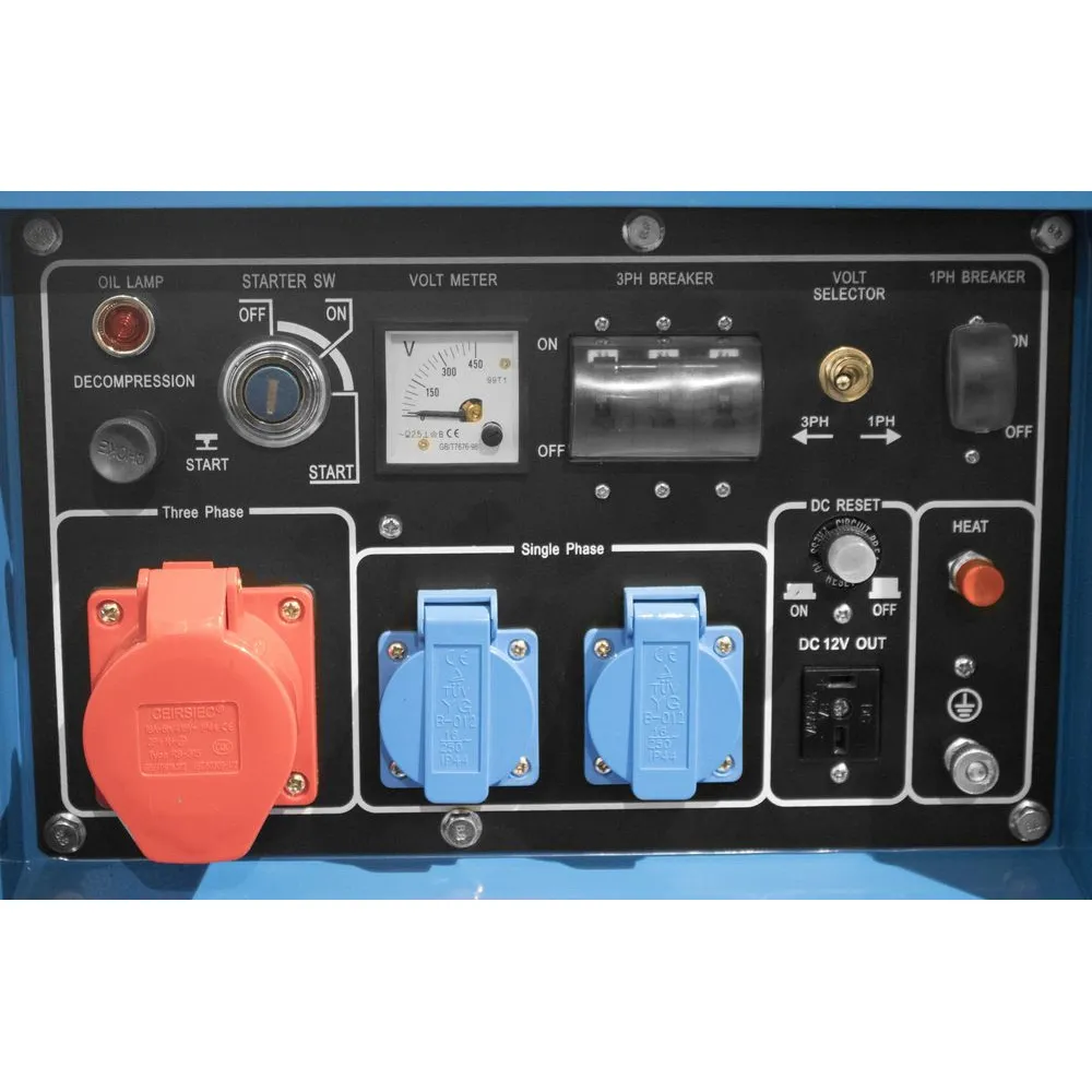 Naftová elektrocentrála v SILENT prevedení, AVR (automatická regulácia napätia pre stabilný výkon), 2 x Schuko 230 V/50 Hz, 1 x 400 V/50 HZ, 1 x 12 V DC (6,35 A), kvalitné kolieska pre ľahké premiestňovanie. Ochrana proti preťaženiu, ochrana pri nízkej hladine oleja, voltmeter. Elektrický štart kľúčom zapaľovania pomocou 12 V batérie. Dodávané bez batérie pre elektrický štart. Tento generátor nie je vhodný na prevádzku elektronicky citlivých prístrojov, ako sú notebooky, chytré telefóny alebo zvukové systémy.