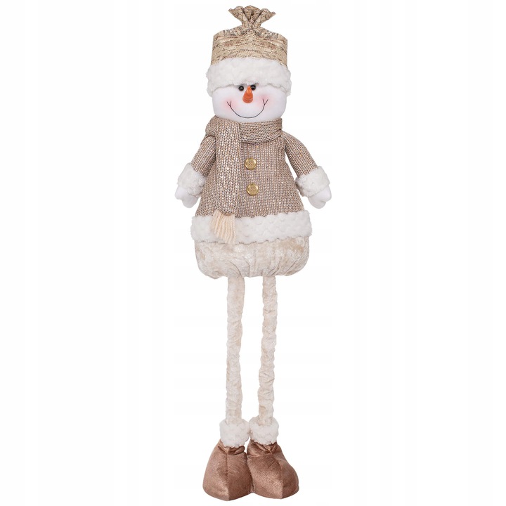 Plyšová dekorácia roztomilého snehuliaka na teleskopických nohách . Plynulo nastaviteľná výška 50 až 75 cm. Stojaca pozícia, stabilná základňa so spojenými topánkami, detailne prevedený a zdobený obleček, kvalitný na dotyk príjemný materiál. Prekrásna vianočná dekorácia, ktorá sa stane ozdobou každého interiéru.
