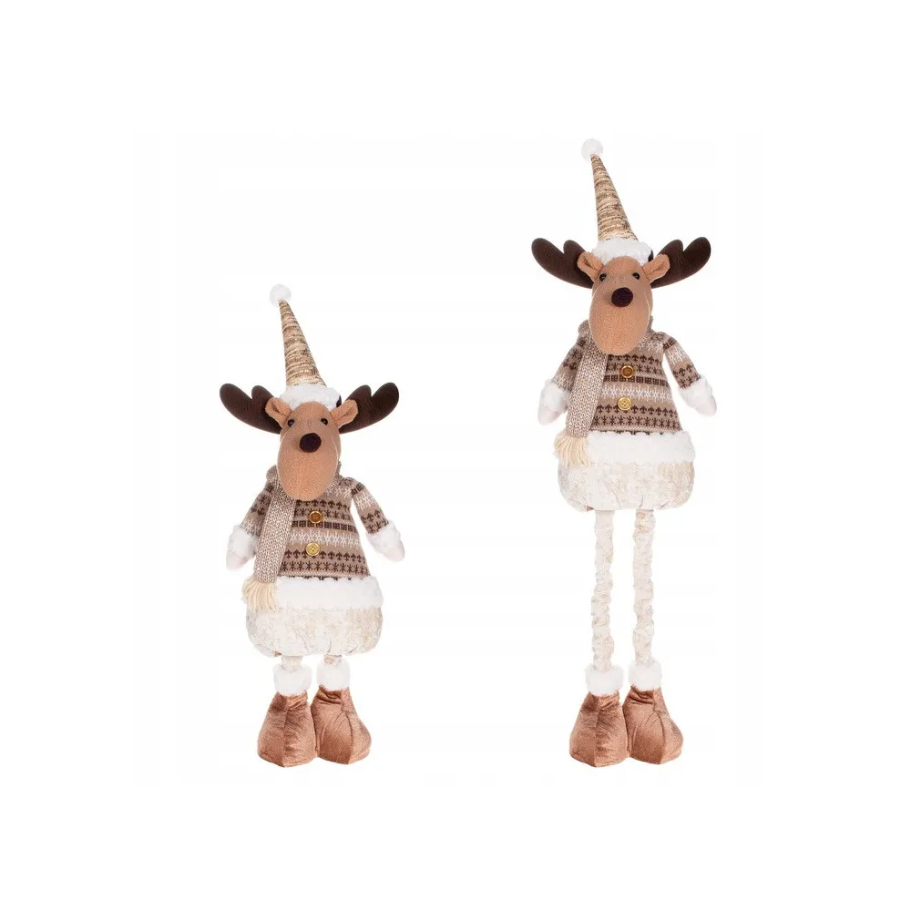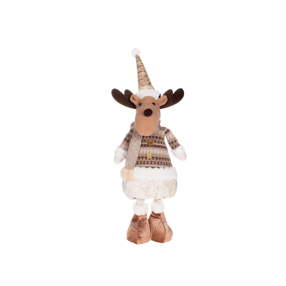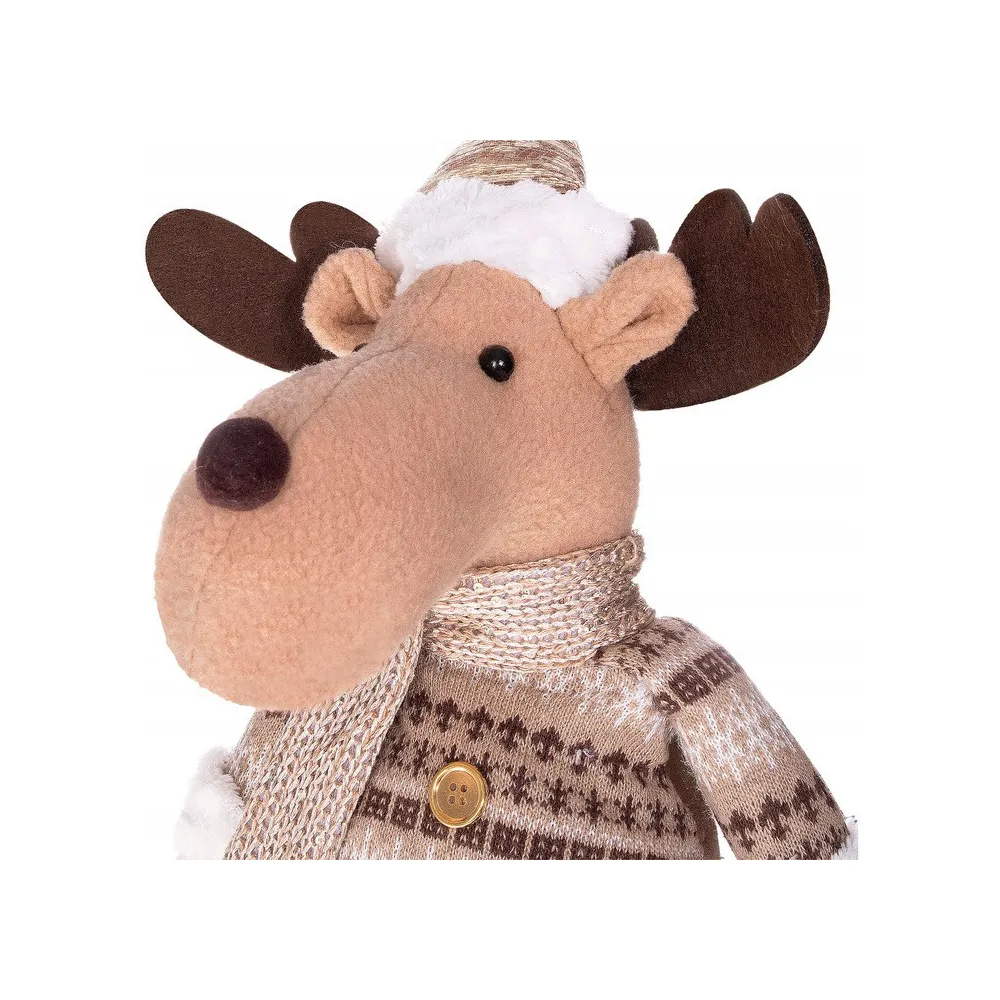 Plyšová dekorácia úžasného soba na teleskopických nohách. Plynulo nastaviteľná výška 42 až 67 cm. Stojaca pozícia, stabilná základňa so spojenými topánkami, slušivý obleček, kvalitný na dotyk príjemný materiál. Prekrásna vianočná dekorácia, ktorá sa stane ozdobou každého interiéru.