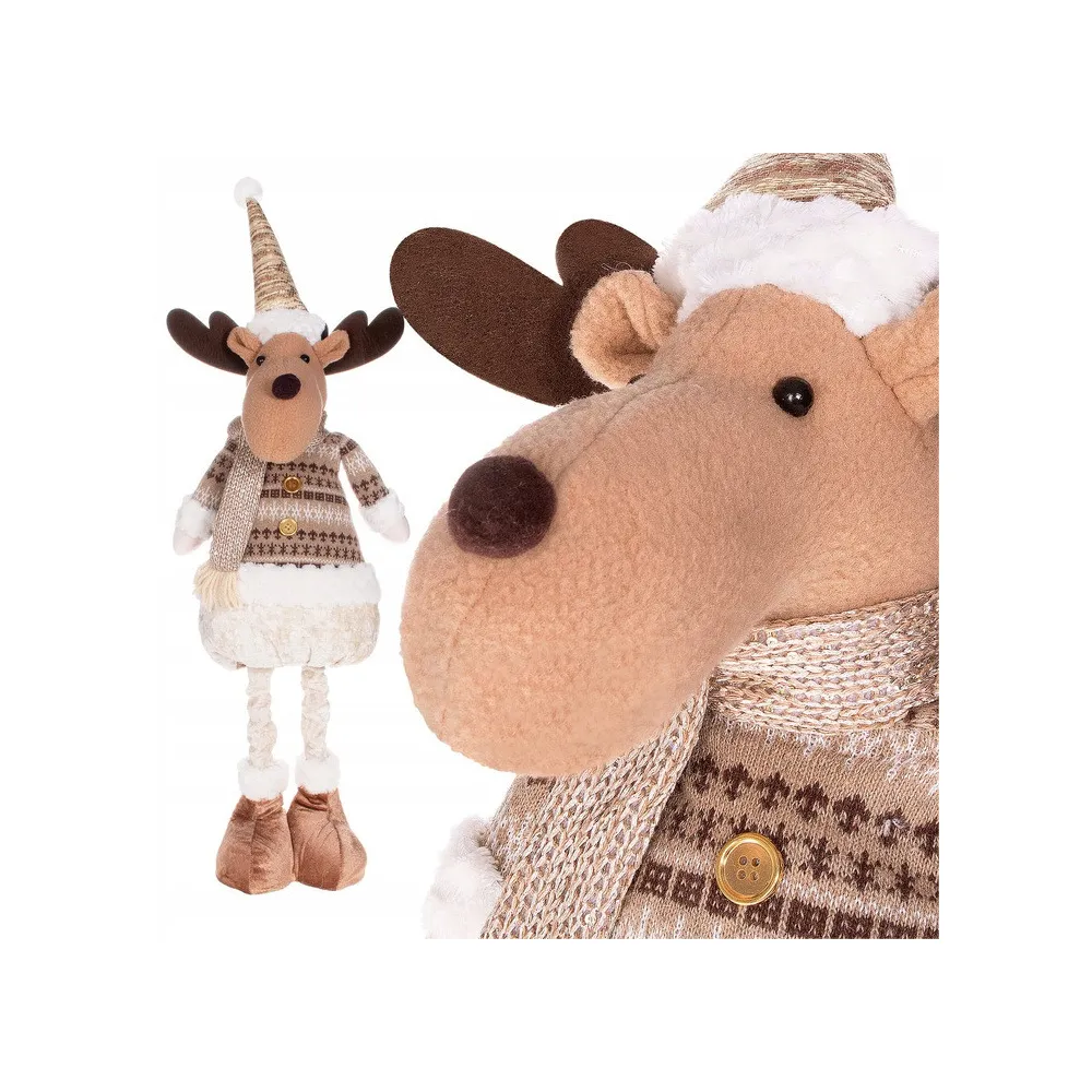 Plyšová dekorácia úžasného soba na teleskopických nohách . Plynulo nastaviteľná výška 42 až 67 cm. Stojaca pozícia, stabilná základňa so spojenými topánkami, slušivý obleček, kvalitný na dotyk príjemný materiál. Prekrásna vianočná dekorácia, ktorá sa stane ozdobou každého interiéru.