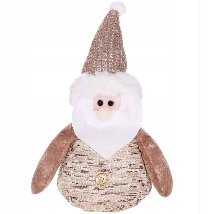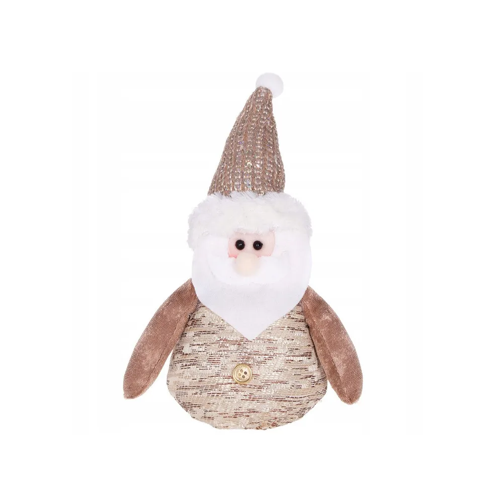 Plyšová dekorácia rozprávkového Santy Clausa s výškou 22 cm. Stojaca / sediaca pozícia, stabilná základňa, sviatočný obleček so zlatým gombíkom, kvalitný a na dotyk príjemný materiál. Prekrásna vianočná dekorácia, ktorá sa stane ozdobou každého interiéru.