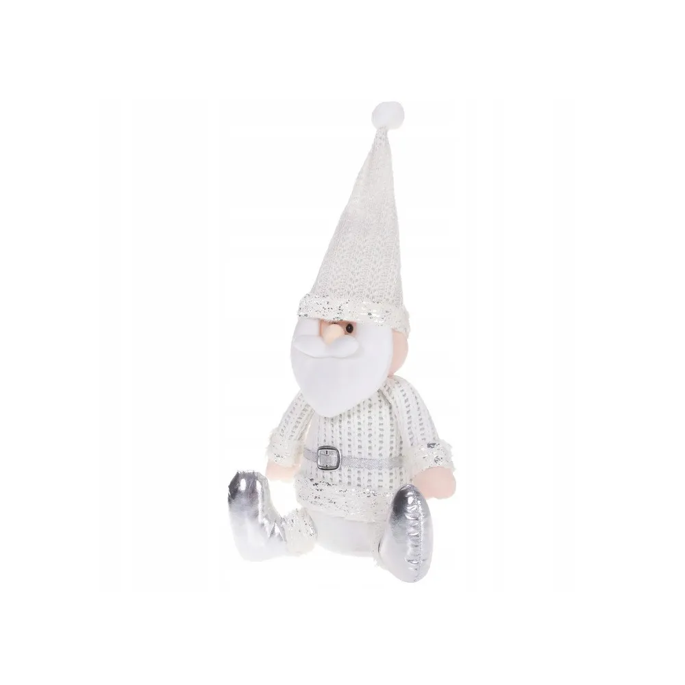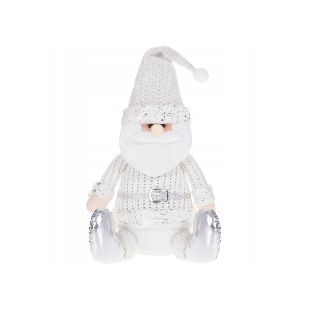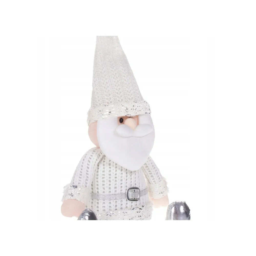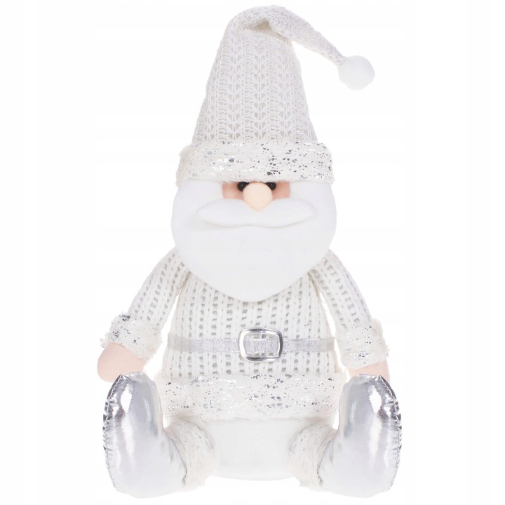 Plyšová dekorácia rozprávkového Santy Clausa o výške 43 cm. Sediaca pozícia, rozkročené nohy, tvarovateľná čiapka, pletený obleček s opaskom, strieborné doplnky, stabilná základňa, kvalitný a na dotyk príjemný materiál. Prekrásna vianočná dekorácia, ktorá sa stane ozdobou každého interiéru.