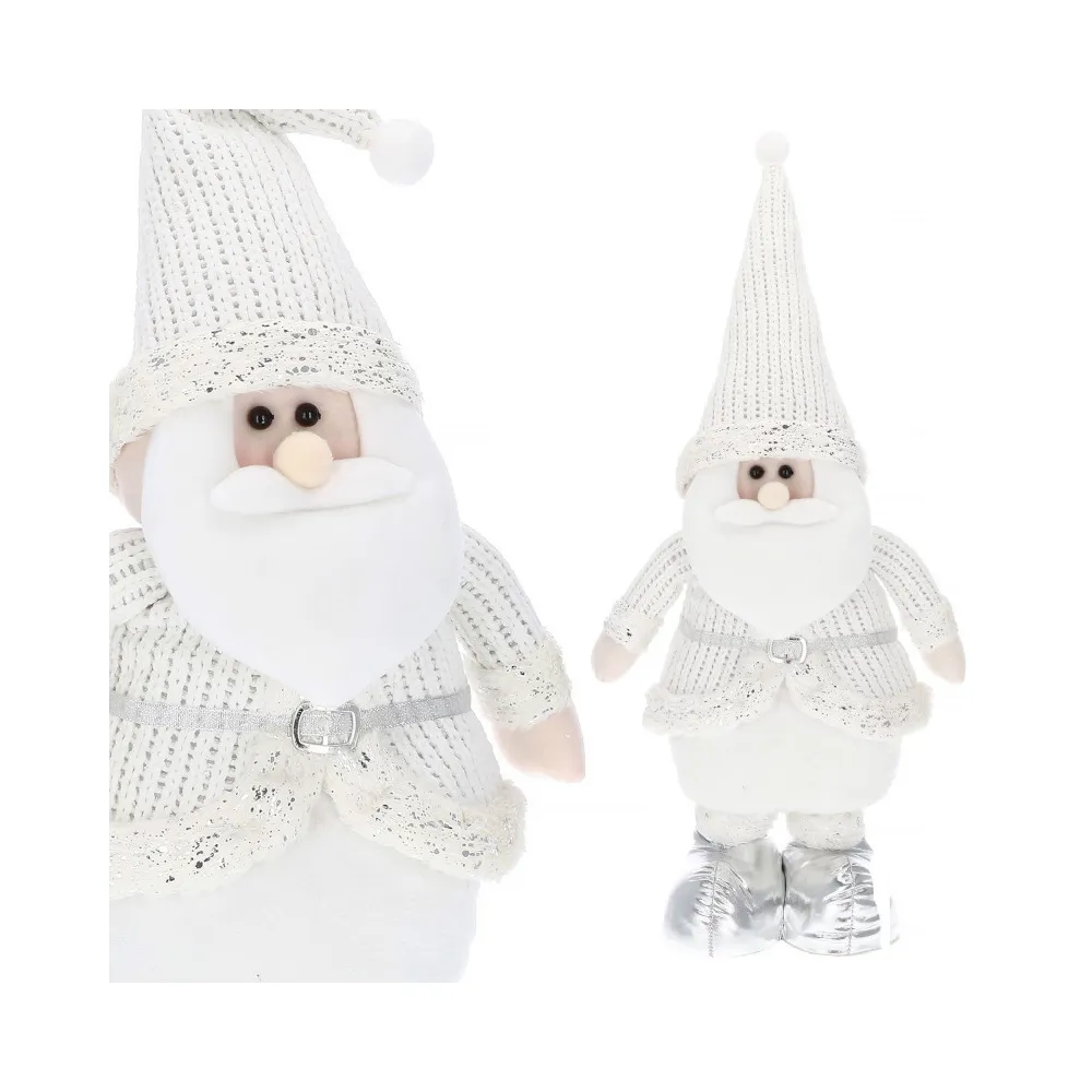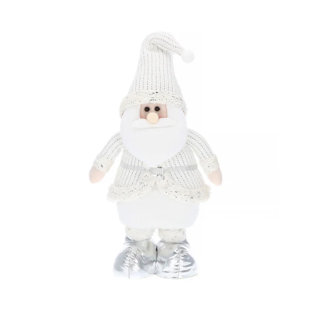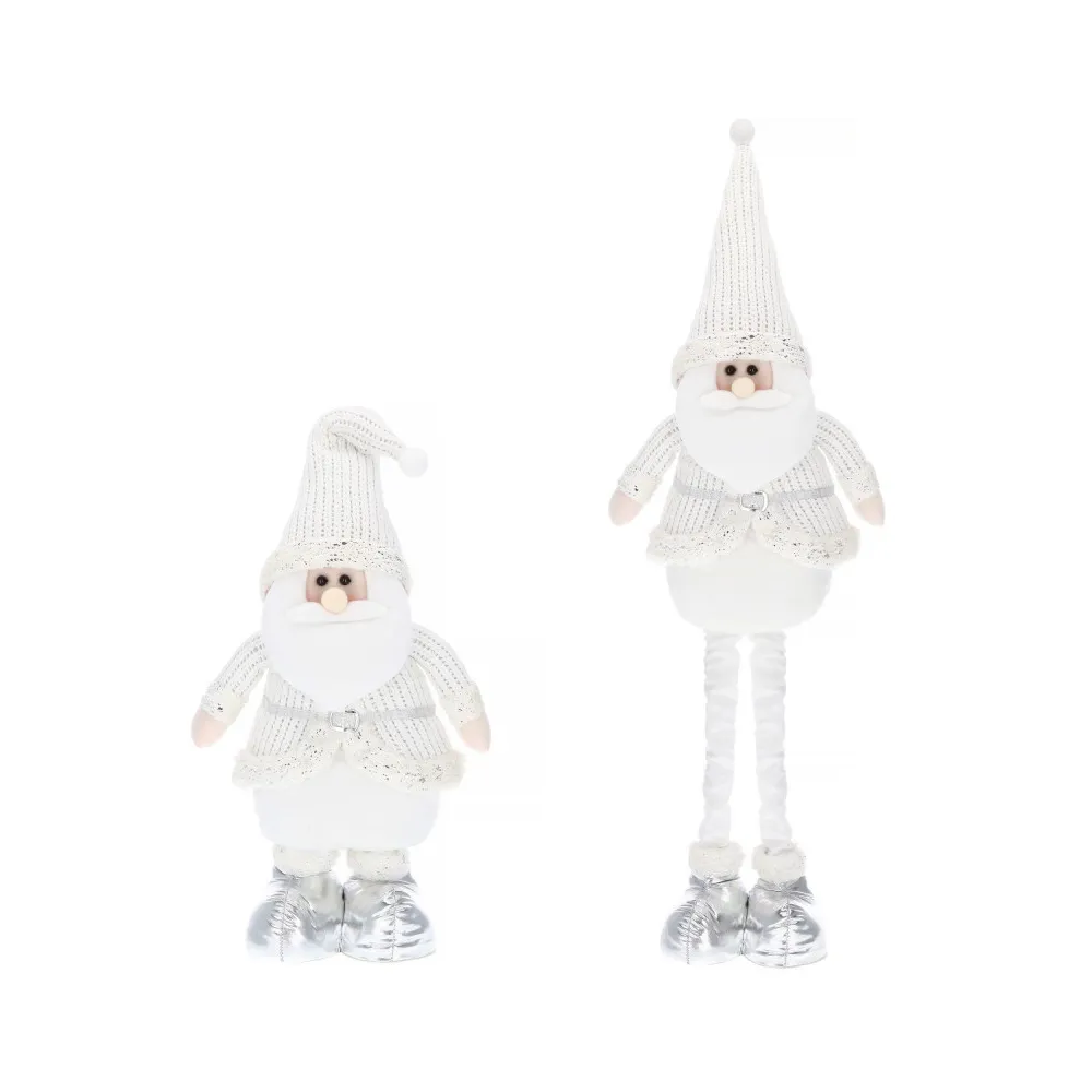 Plyšová dekorácia rozprávkového Santa Clausa na teleskopických nohách. Plynule nastaviteľná výška 62 až 90 cm. Stojaca pozícia, stabilná základňa so spojenými topánkami, pletený obleček so strieborným pásikom, kvalitný a na dotyk príjemný materiál. Prekrásna vianočná dekorácia, ktorá sa stane ozdobou každého interiéru.