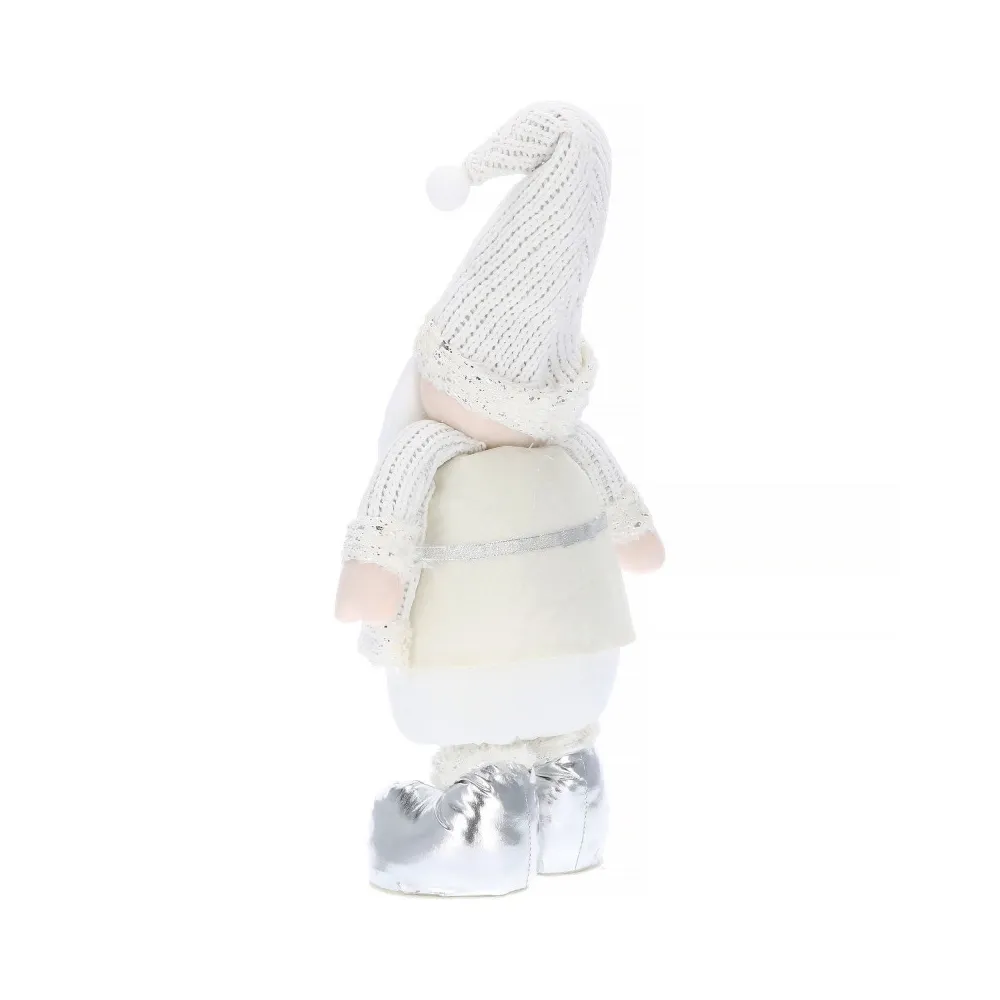 Santa je vyrobený z prvotriednych materiálov a prepracovaný do posledného detailu. Zdobí ho pletený obleček, dlhý plnofúz, strieborný opasok, vysoká čiapka s brmbolcom a potom rad maličkostí, ktoré podčiarkujú jedinečnosť tejto dekorácie. Vďaka teleskopickým nohám môžete podľa potreby upraviť jeho výšku medzi 62 až 90 cm.