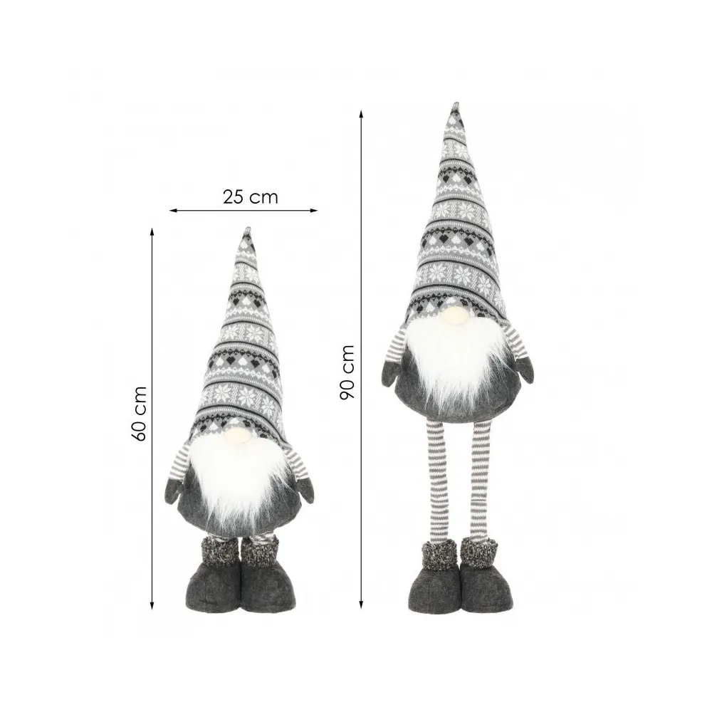 Škriatok je vyrobený z prvotriednych materiálov a prepracovaný do posledného detailu. Zdobí ho prekrásny obleček, vysoká čiapka so zimným vzorom, dlhý fúz a potom rad maličkostí, ktoré podčiarkujú jedinečnosť tejto dekorácie. Vďaka teleskopickým nohám môžete podľa potreby upraviť jeho výšku medzi 54 až 86 cm.