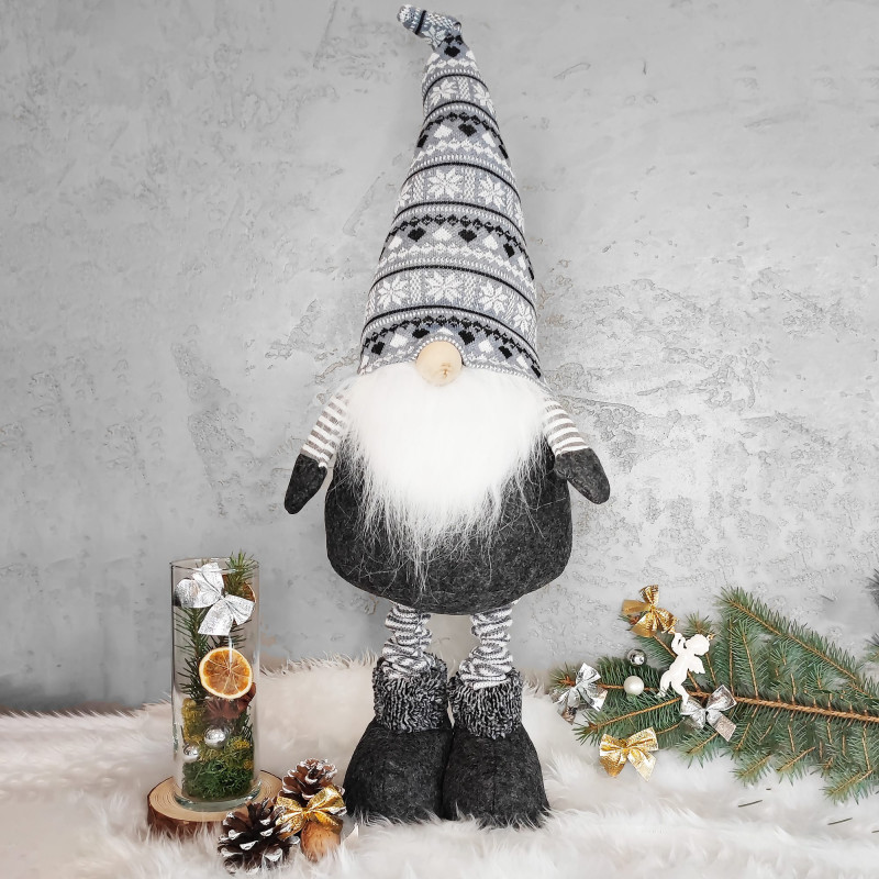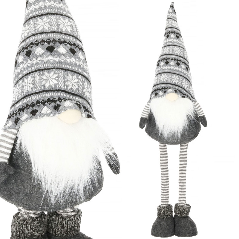 Škriatok je vyrobený z prvotriednych materiálov a prepracovaný do posledného detailu. Zdobí ho prekrásny obleček, vysoká čiapka so zimným vzorom, dlhý fúz a potom rad maličkostí, ktoré podčiarkujú jedinečnosť tejto dekorácie. Vďaka teleskopickým nohám môžete podľa potreby upraviť jeho výšku medzi 54 až 86 cm.
