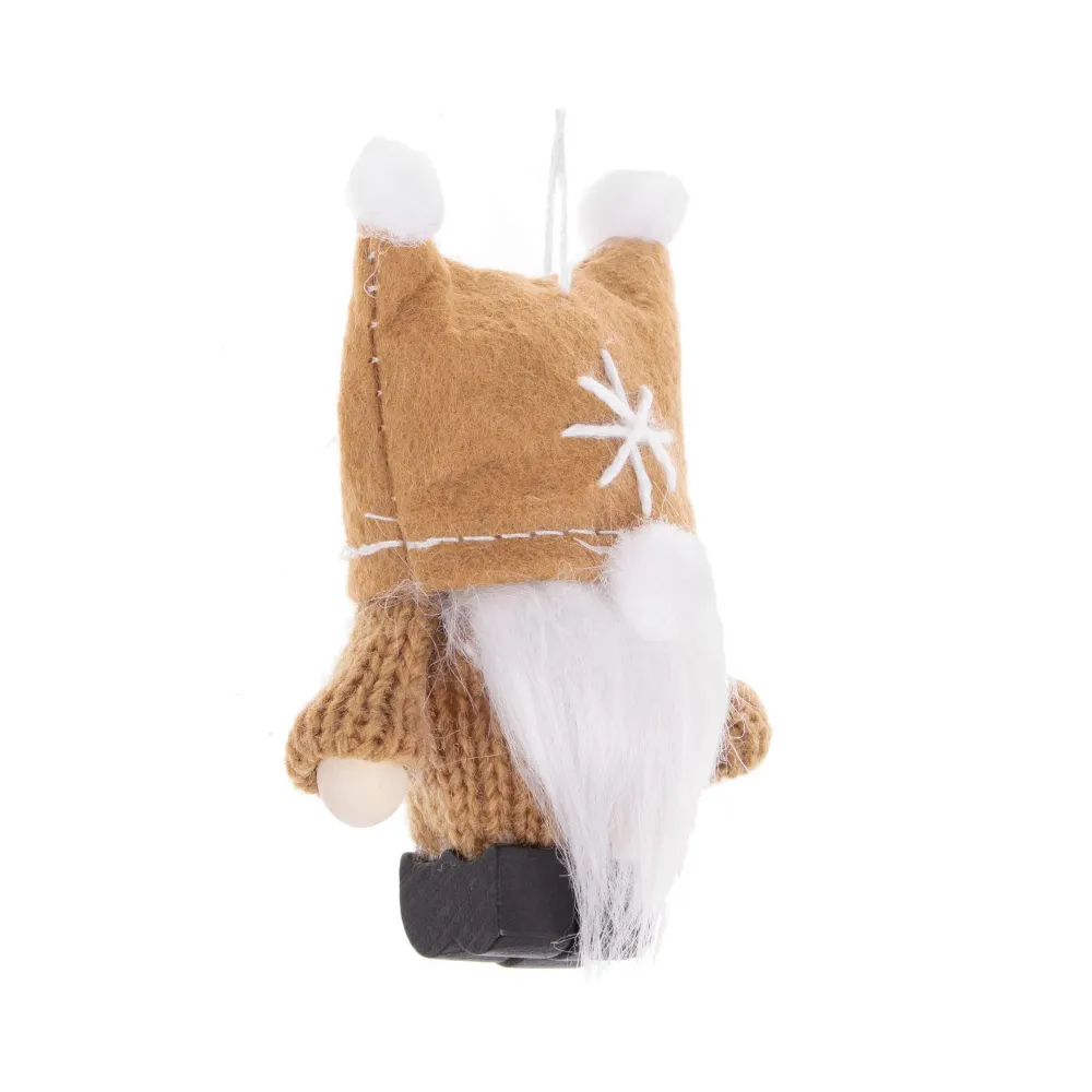 Originálna vianočná ozdoba na zavesenie v podobe trpasličieho škriatka Gnoma. Výška 8 cm, drevené nohy, ruky aj nos, pletený obleček, kvalitný a na dotyk príjemný materiál. Zadarmo pútko na zavesenie. Ideálne na výzdobu stromčekov alebo ako vianočné dekorácie.