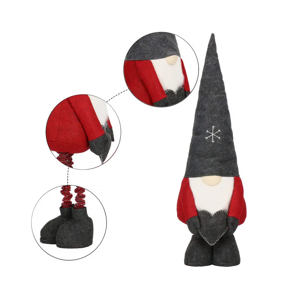 Plyšová dekorácia vianočného škriatka na teleskopických nohách . Plynulo nastaviteľná výška 80 až 125 cm. Stojaca pozícia, stabilná základňa so spojenými topánkami, slušivý obleček so srdcom, kvalitný a na dotyk príjemný materiál. Prekrásna vianočná dekorácia, ktorá sa stane ozdobou každého interiéru.