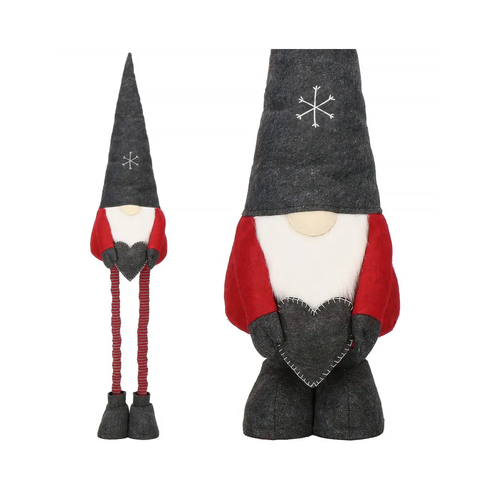 Plyšová dekorácia vianočného škriatka na teleskopických nohách. Plynulo nastaviteľná výška 80 až 125 cm. Stojaca pozícia, stabilná základňa so spojenými topánkami, slušivý obleček so srdcom, kvalitný a na dotyk príjemný materiál. Prekrásna vianočná dekorácia, ktorá sa stane ozdobou každého interiéru.