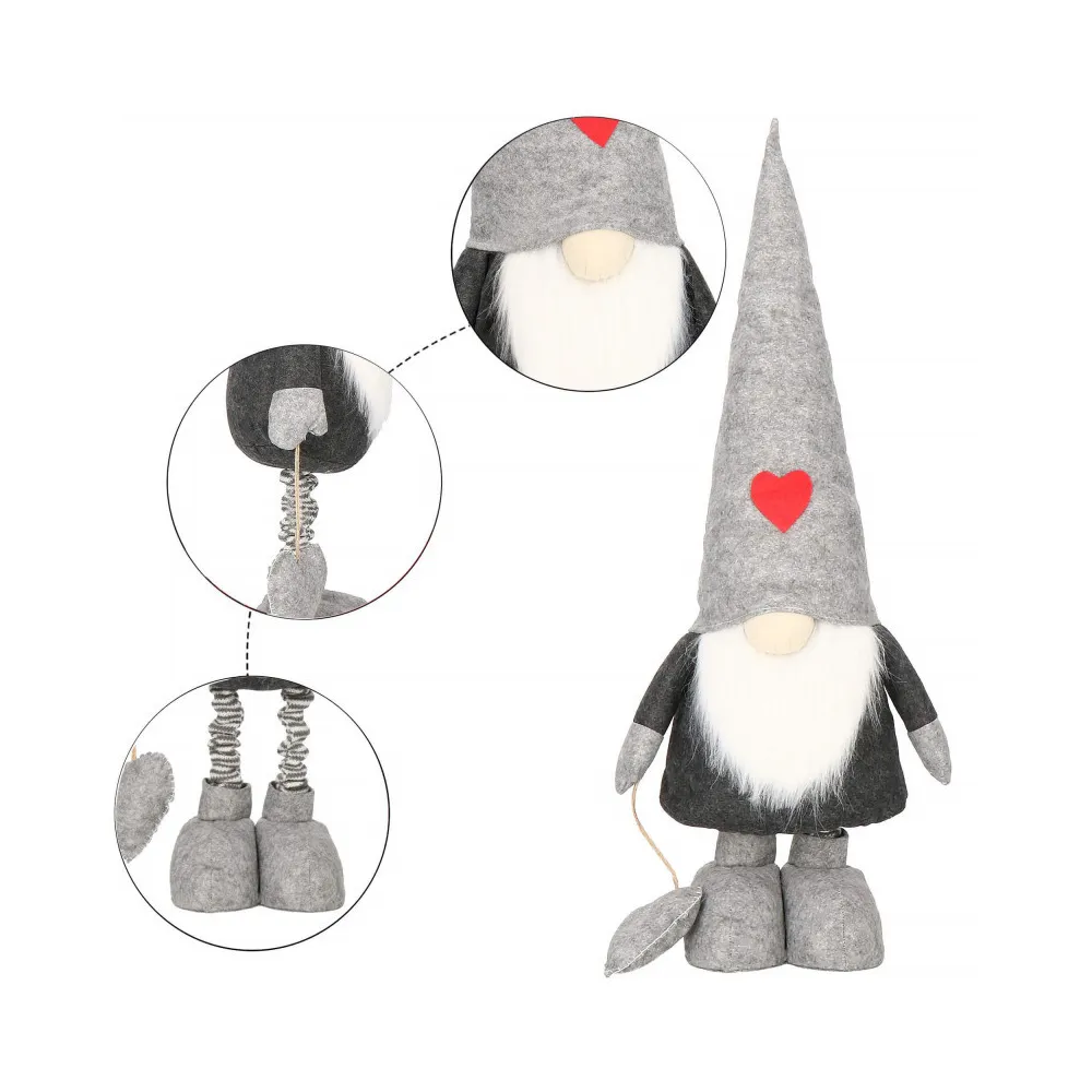 Škriatok je vyrobený z prvotriednych materiálov a prepracovaný do posledného detailu. Zdobí ho prekrásny obleček, vysoká čiapka so srdcom, dlhý fúz a rad maličkostí, ktorá podčiarkuje jedinečnosť tejto dekorácie. Vďaka teleskopickým nohám môžete podľa potreby upraviť jeho výšku medzi 82 až 130 cm.