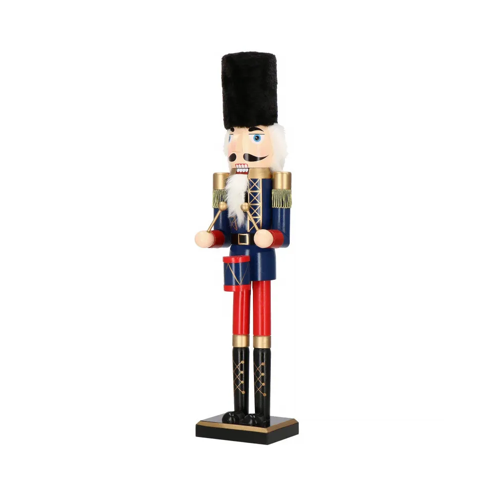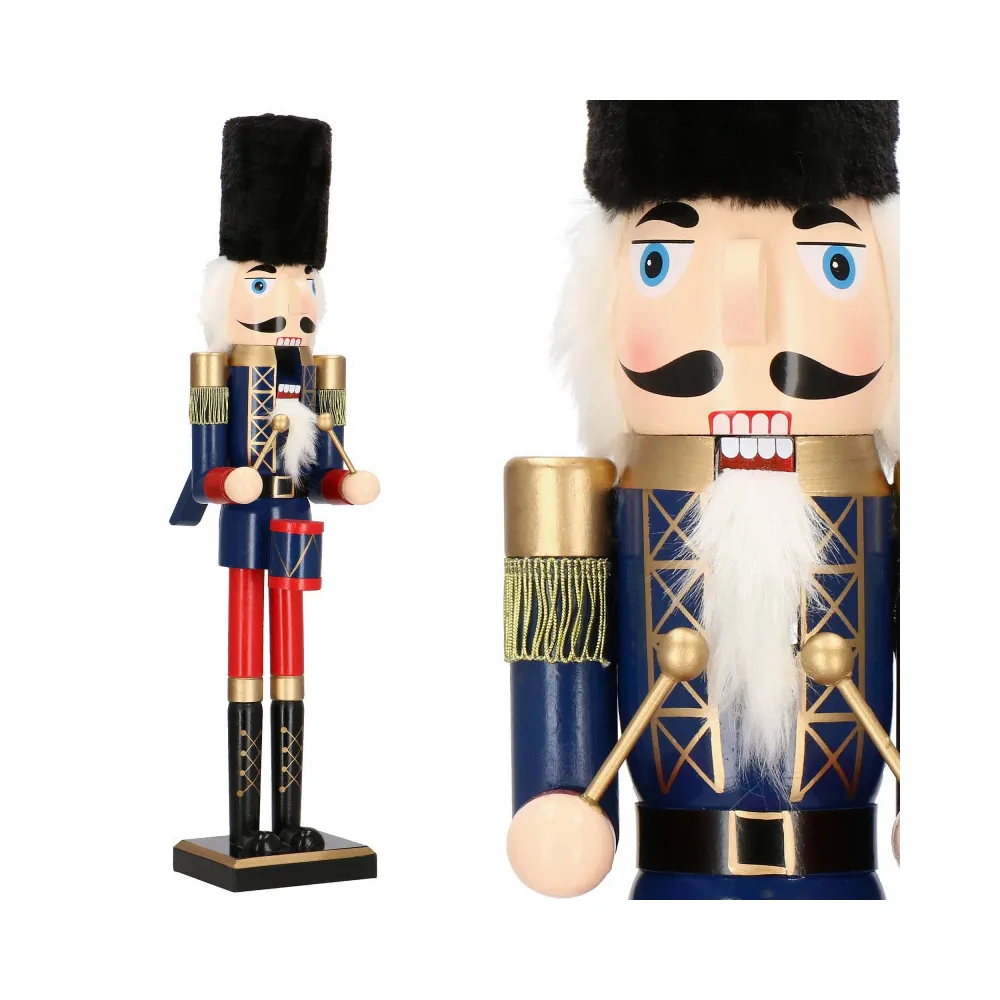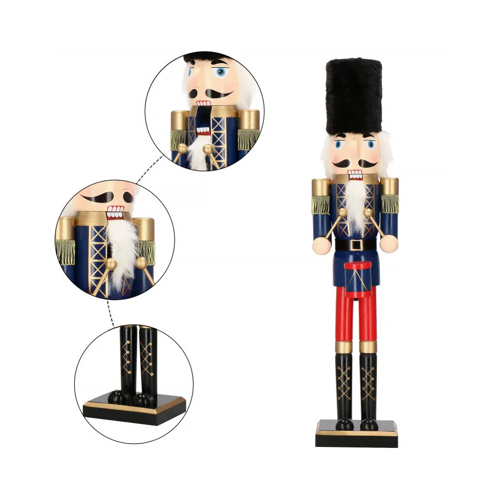 Drevená dekorácia kozáckeho vojaka s bubienkom. Výška 61 cm, stojaca pozícia, stabilná základňa, ručne maľované drevo, pohyblivé ústa. Prekrásna vianočná dekorácia, ktorá sa stane ozdobou každého interiéru.
