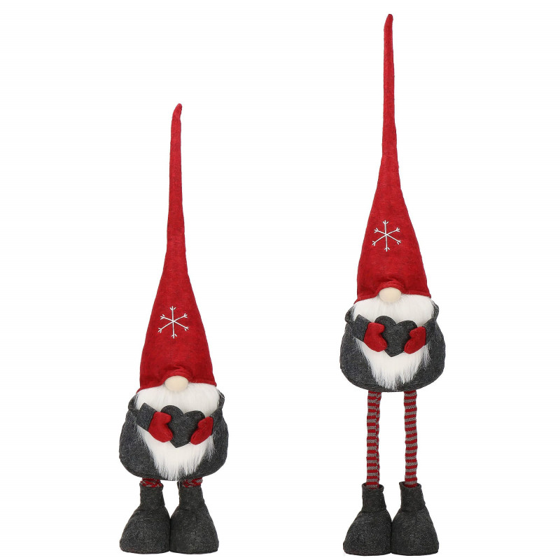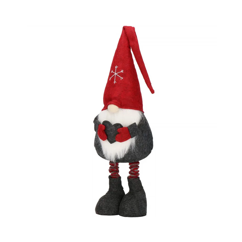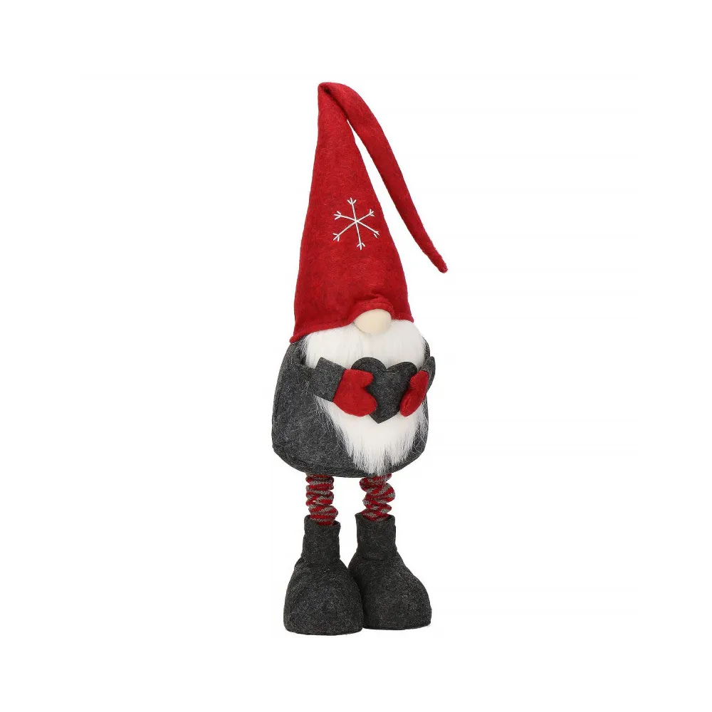 Plyšová dekorácia vianočného škriatka na teleskopických nohách. Plynulo nastaviteľná výška 70 až 88 cm. Stojaca pozícia, stabilná základňa so spojenými topánkami, tvarovateľná čiapka, slušivý obleček so srdcom, kvalitný a na dotyk príjemný materiál. Prekrásna vianočná dekorácia, ktorá sa stane ozdobou každého interiéru.