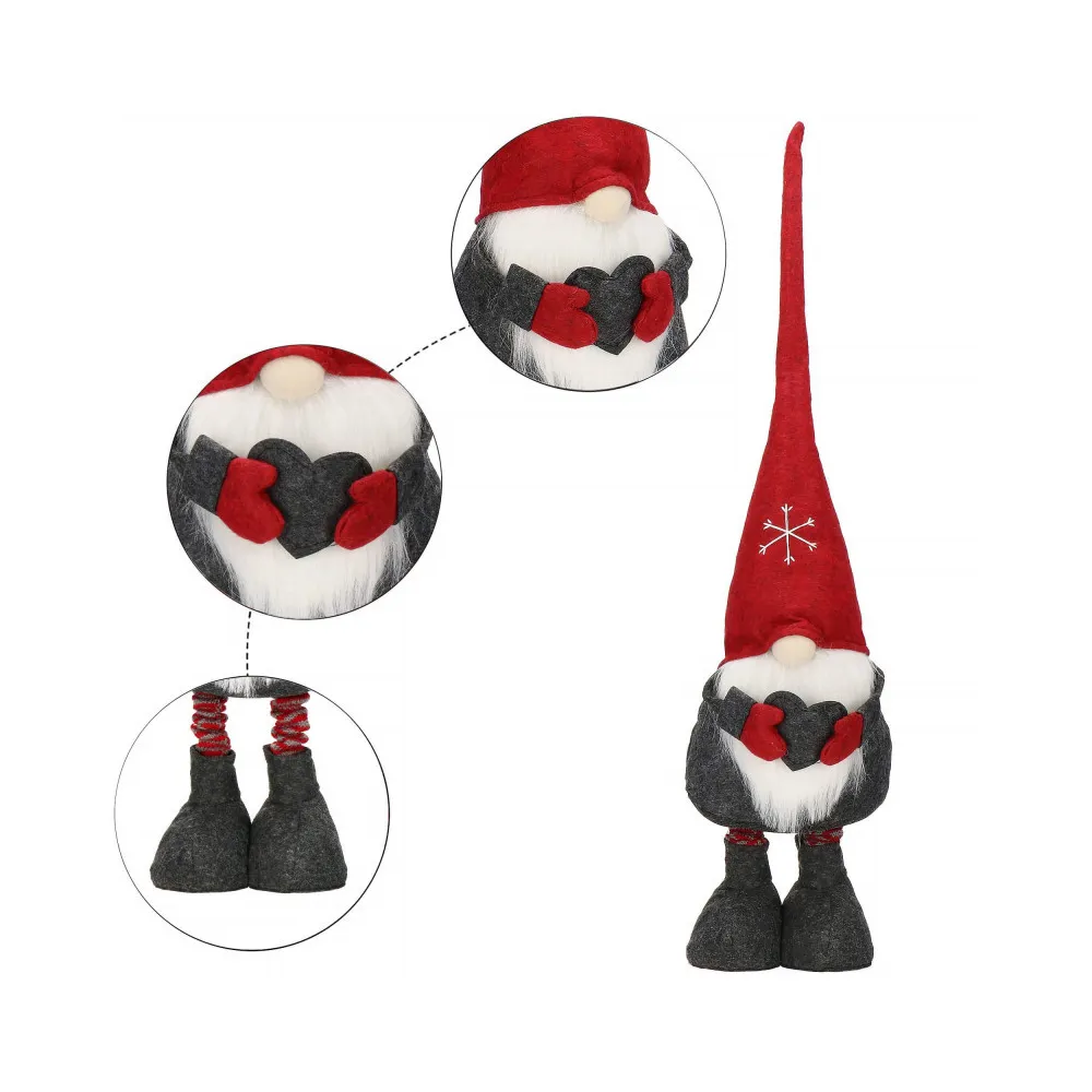 Plyšová dekorácia vianočného škriatka na teleskopických nohách . Plynulo nastaviteľná výška 70 až 88 cm. Stojaca pozícia, stabilná základňa so spojenými topánkami, tvarovateľná čiapka, slušivý obleček so srdcom, kvalitný a na dotyk príjemný materiál. Prekrásna vianočná dekorácia, ktorá sa stane ozdobou každého interiéru.