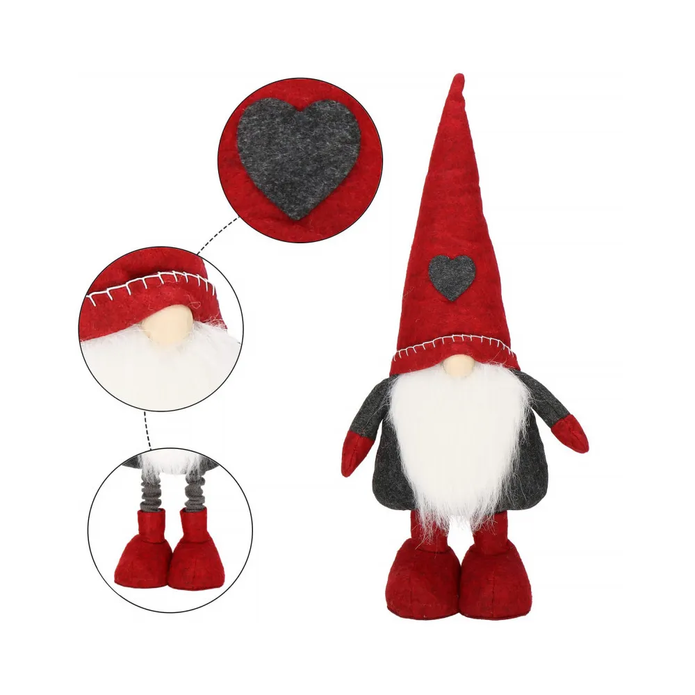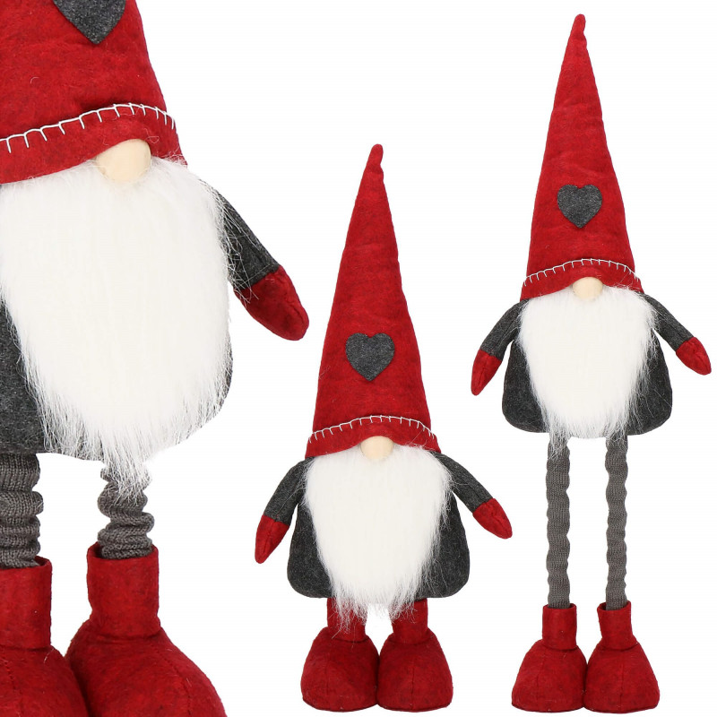 Plyšová dekorácia vianočného škriatka na teleskopických nohách . Plynulo nastaviteľná výška 51 až 70 cm. Stojaca pozícia, stabilná základňa so spojenými topánkami, vysoká čiapka so srdcom, slušivý obleček, kvalitný a na dotyk príjemný materiál. Prekrásna vianočná dekorácia, ktorá sa stane ozdobou každého interiéru.