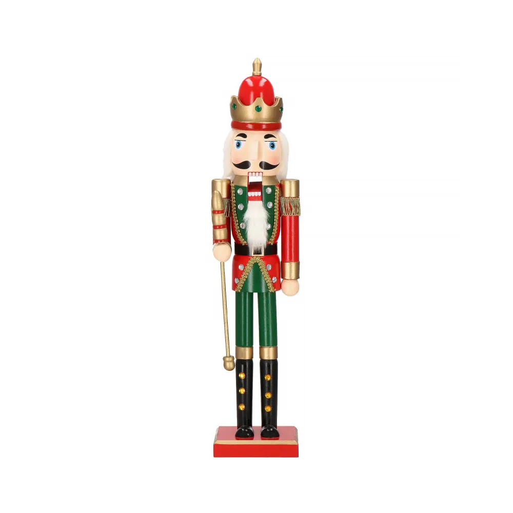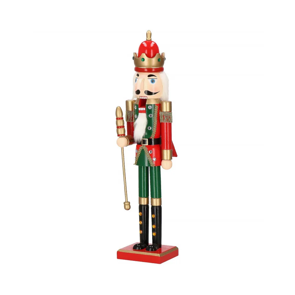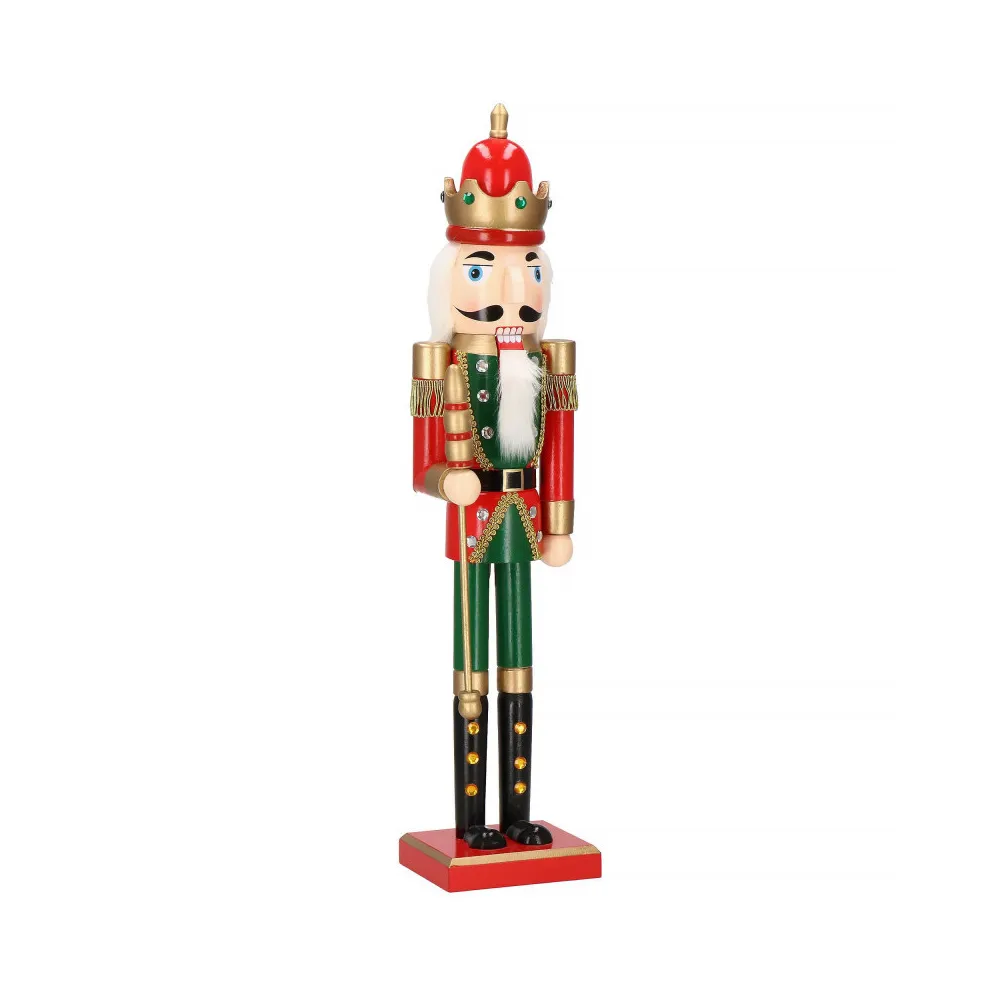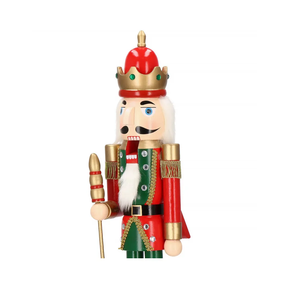 Drevená dekorácia kráľa so žezlom. Výška 61 cm, stojaca pozícia, stabilná základňa, ručne maľované drevo so zirkónmi, pohyblivé ústa. Prekrásna vianočná dekorácia, ktorá sa stane ozdobou každého interiéru.