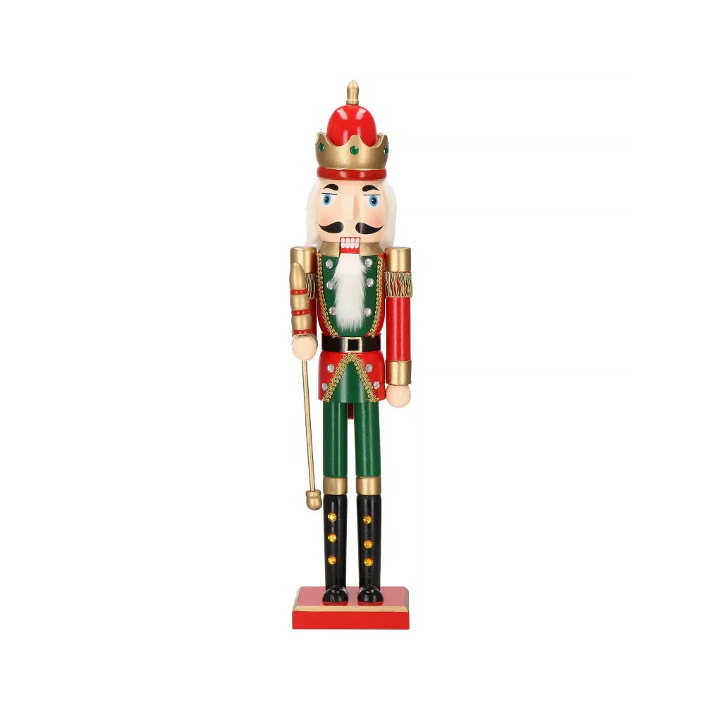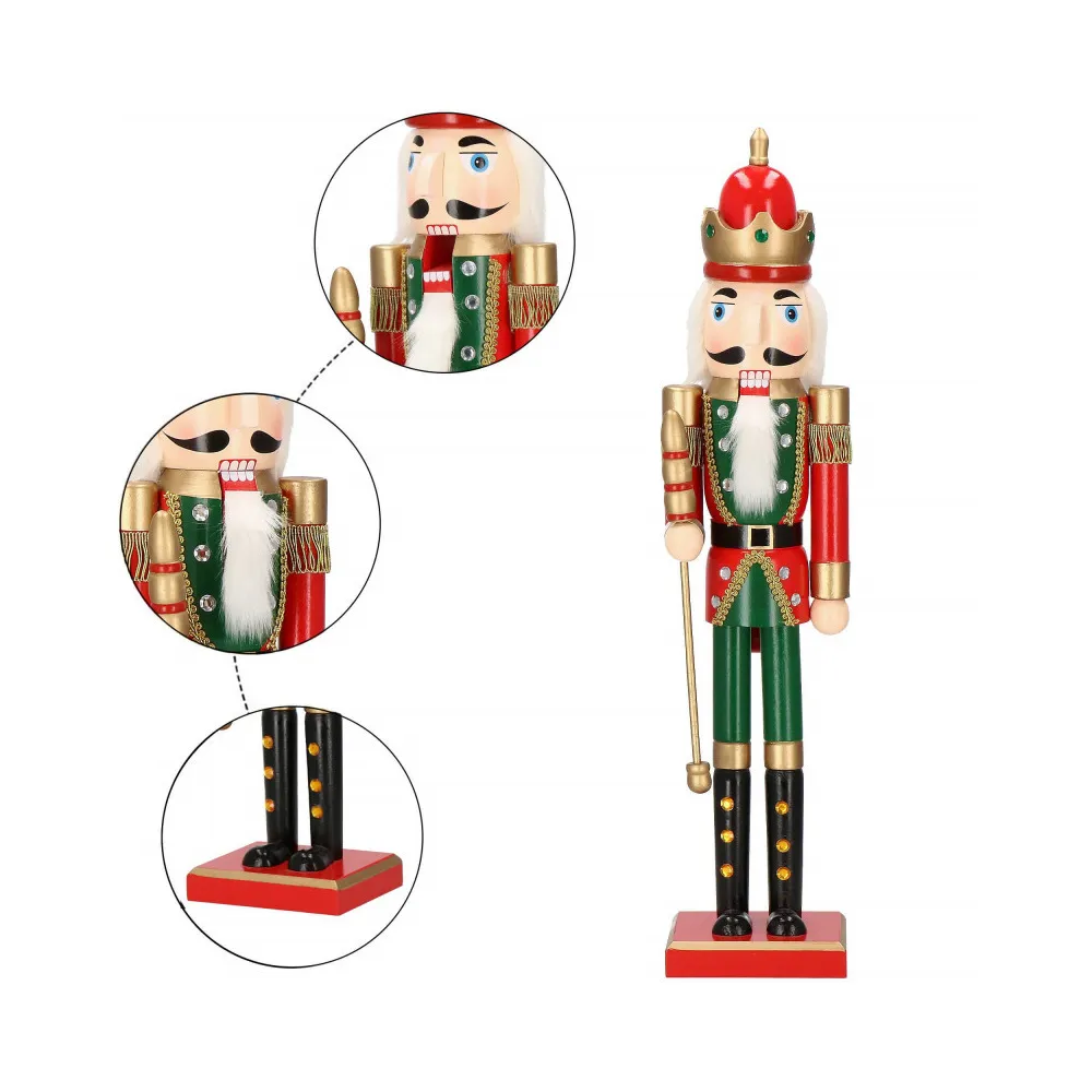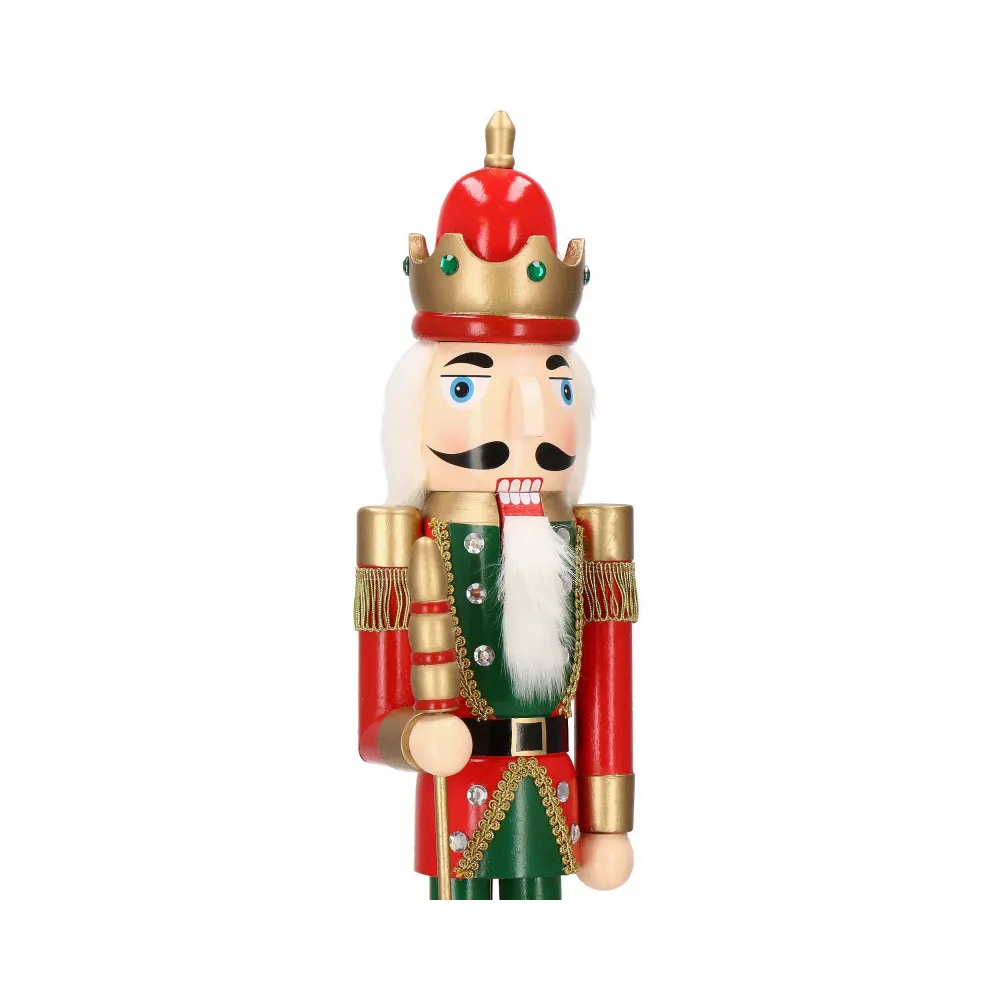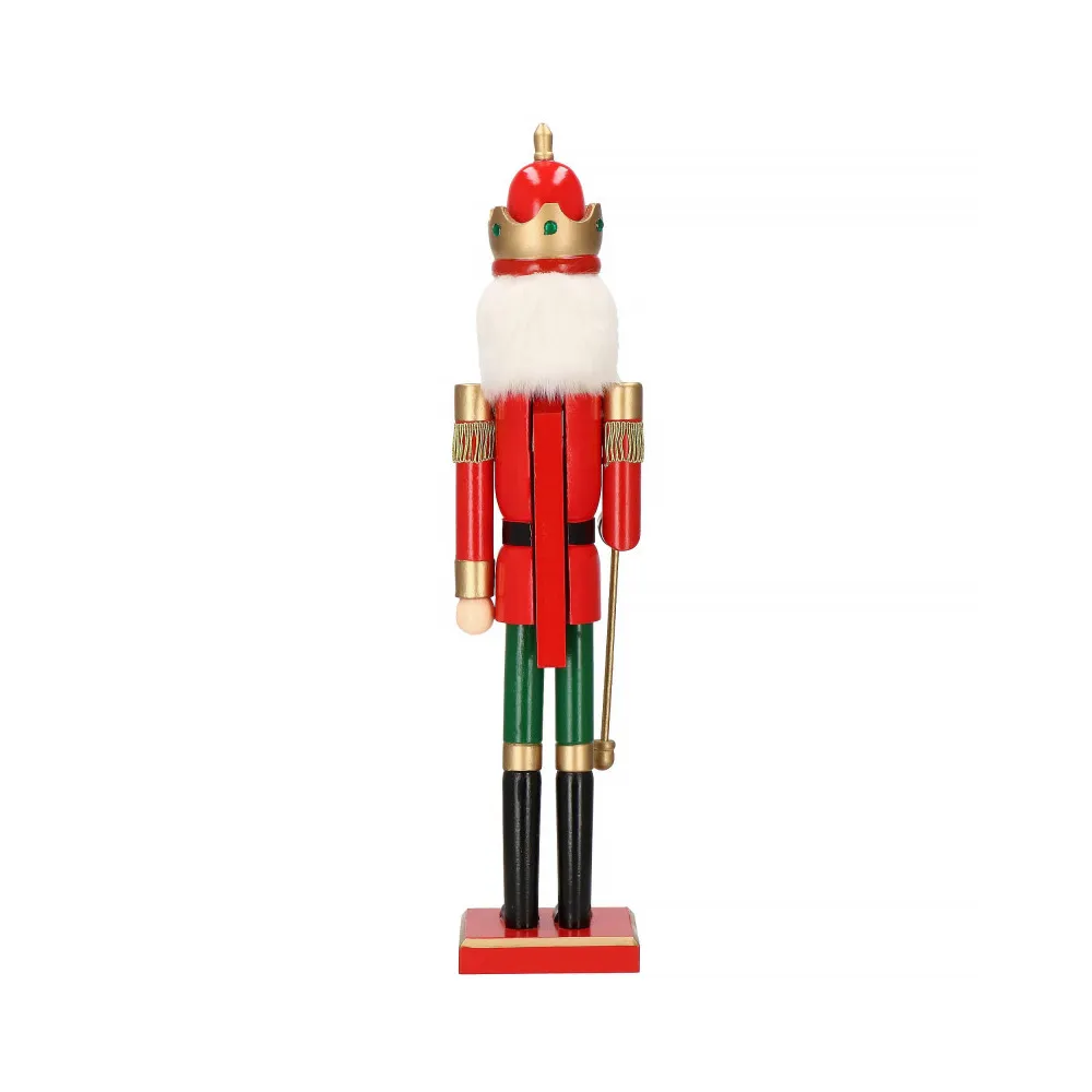 Drevená dekorácia kráľa so žezlom. Výška 61 cm, stojaca pozícia, stabilná základňa, ručne maľované drevo so zirkónmi, pohyblivé ústa. Prekrásna vianočná dekorácia, ktorá sa stane ozdobou každého interiéru.
