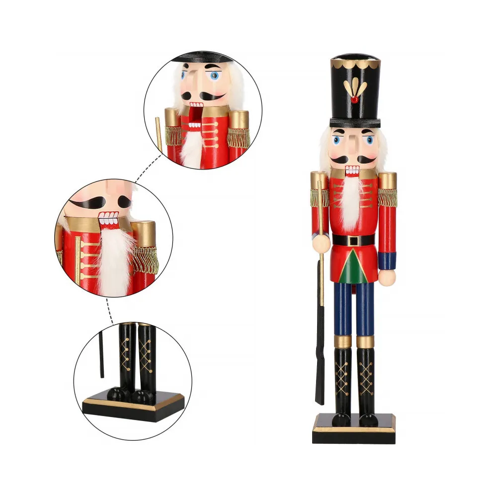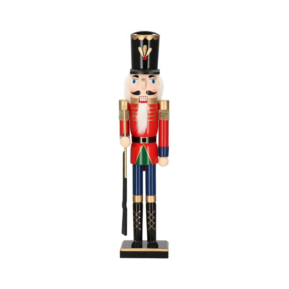 Drevená dekorácia kozáckeho vojaka so zbraňou na stráži. Výška 61 cm, stojaca pozícia, stabilná základňa, ručne maľované drevo, pohyblivé ústa. Prekrásna vianočná dekorácia, ktorá sa stane ozdobou každého interiéru.