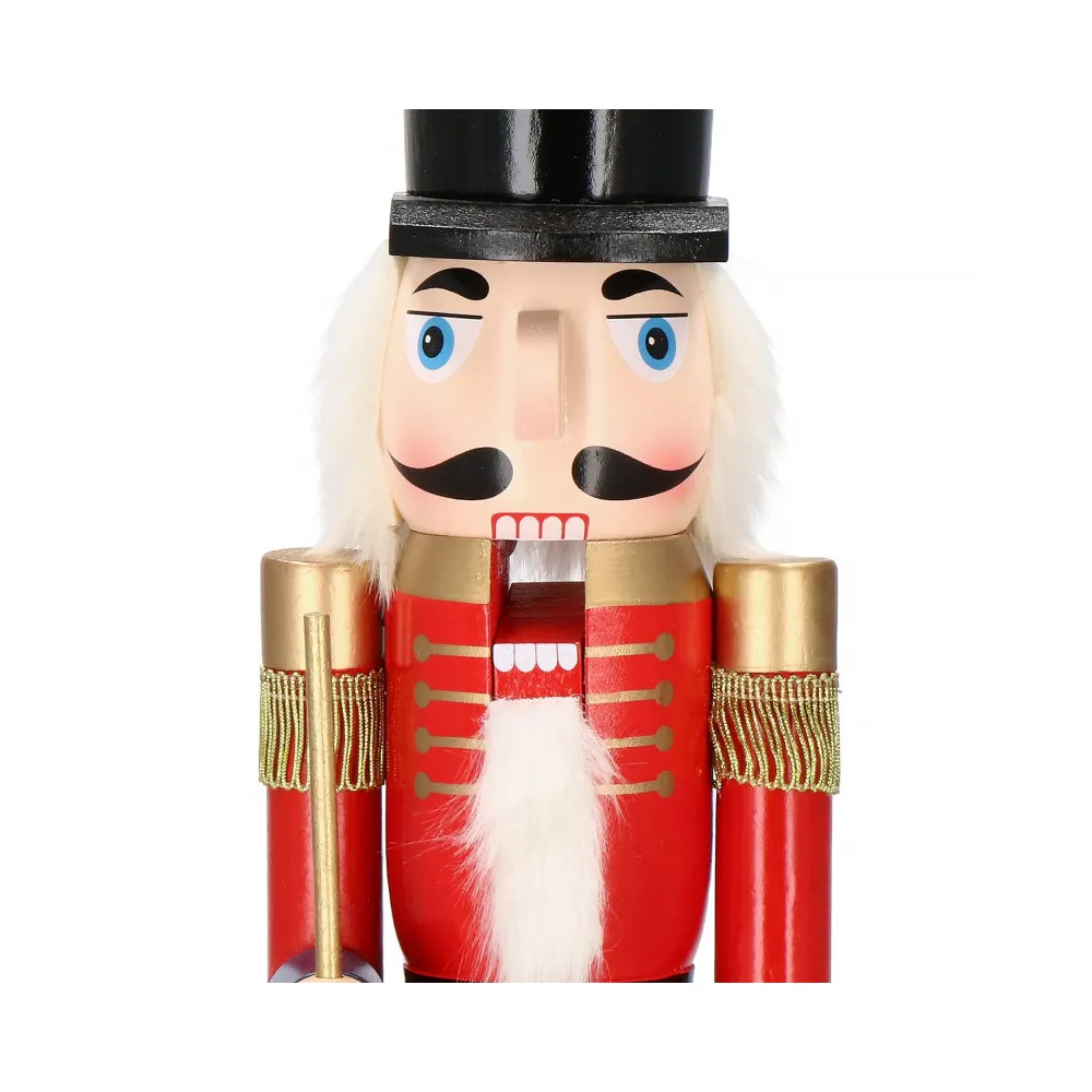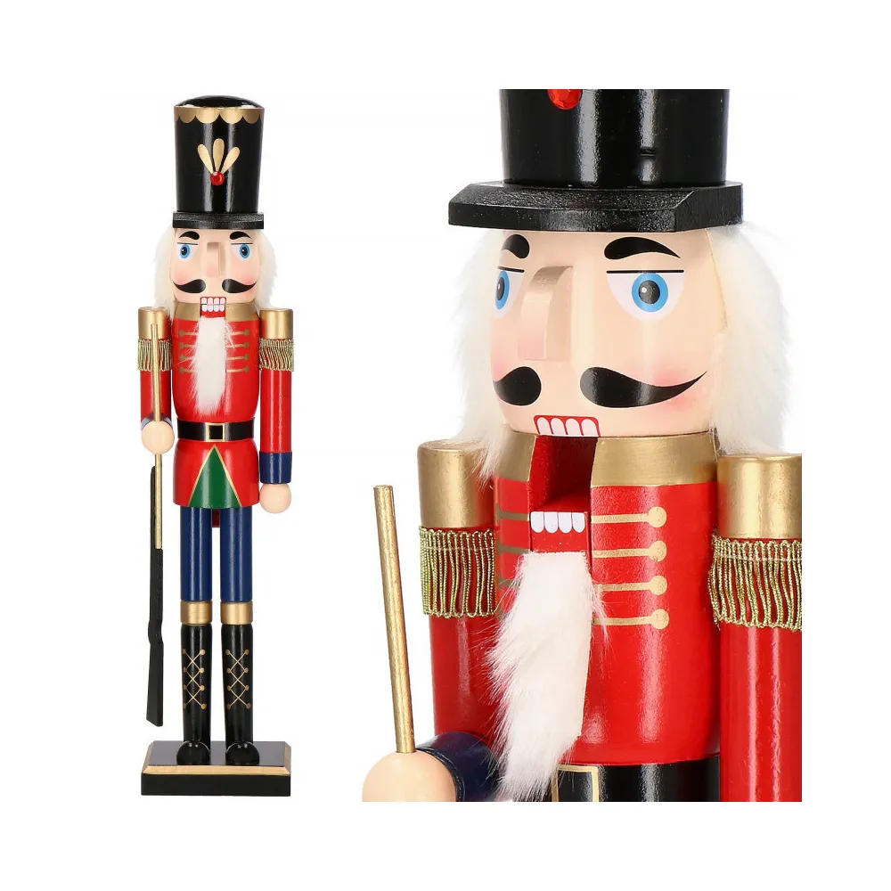 Luskáčik je vyrobený z ručne maľovaného dreva a prepracovaný do posledného detailu. Zdobí ho vysoká čiapka, puška a dlhé fúzy. Zatiahnutím za fúzy alebo stlačením páčky na chrbte otvára a zatvára ústa.
