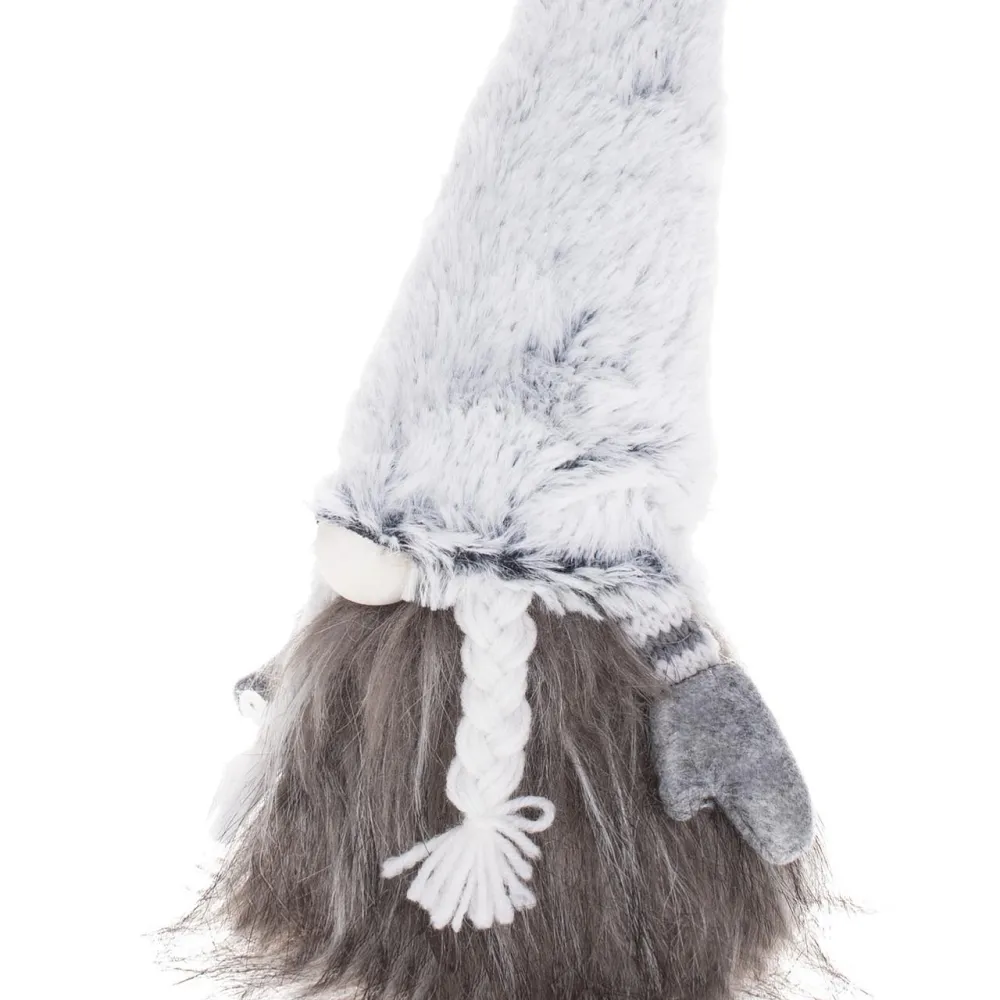 Plyšová dekorácia vianočného škriatka s výškou 30 cm. Stojaca pozícia, chlpatý obleček, dlhé vrkoče, stabilná základňa, kvalitný a na dotyk príjemný materiál. Prekrásna vianočná dekorácia, ktorá sa stane ozdobou každého interiéru.