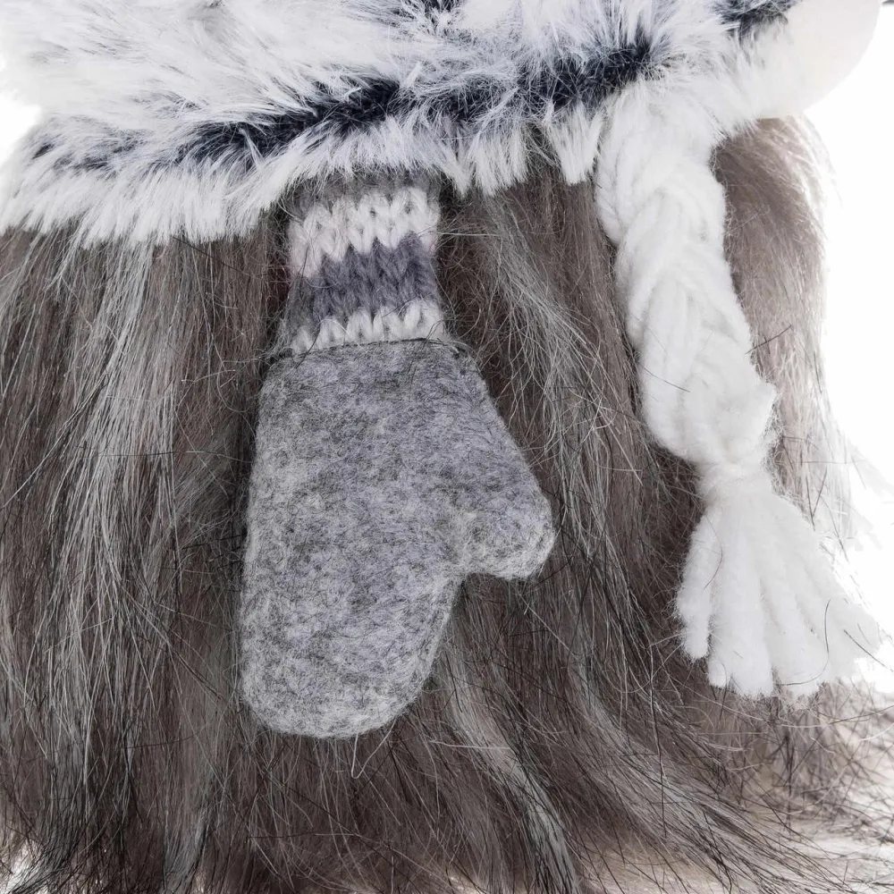 Plyšová dekorácia vianočného škriatka s výškou 30 cm. Stojaca pozícia, chlpatý obleček, dlhé vrkoče, stabilná základňa, kvalitný a na dotyk príjemný materiál. Prekrásna vianočná dekorácia, ktorá sa stane ozdobou každého interiéru.