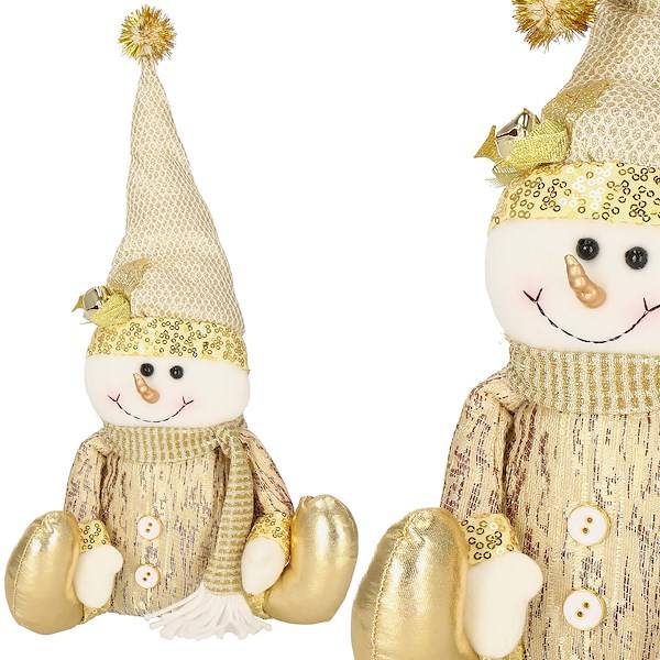 Plyšová dekorácia usmievavého snehuliaka s výškou 30 cm. Sediaca pozícia, tvarovateľná čiapka, detailne prevedený a zdobený obleček, stabilná základňa, kvalitné na dotyk príjemný materiál. Prekrásna vianočná dekorácia, ktorá sa stane ozdobou každého interiéru.