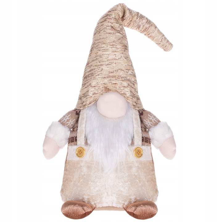 Plyšová dekorácia vianočného škriatka s výškou 35 cm. Stojaca pozícia, možnosť natočenia čiapky, stabilná základňa, sviatočný obleček zdobený lesklou niťou a gombíkmi, kvalitný a na dotyk príjemný materiál. Prekrásna vianočná dekorácia, ktorá sa stane ozdobou každého interiéru.