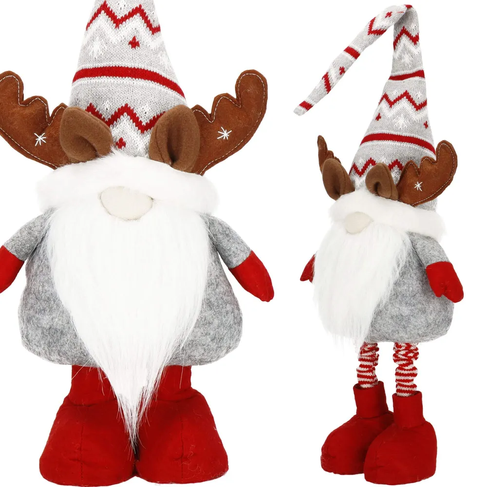 Plyšová dekorácia vianočného škriatka na teleskopických nohách. Plynulo nastaviteľná výška 60 až 80 cm. Stojaca pozícia, stabilná základňa so spojenými topánkami, vysoká pletená čiapka, slušivý obleček, so sobím parožím, kvalitný a na dotyk príjemný materiál. Prekrásna vianočná dekorácia, ktorá sa stane ozdobou každého interiéru.