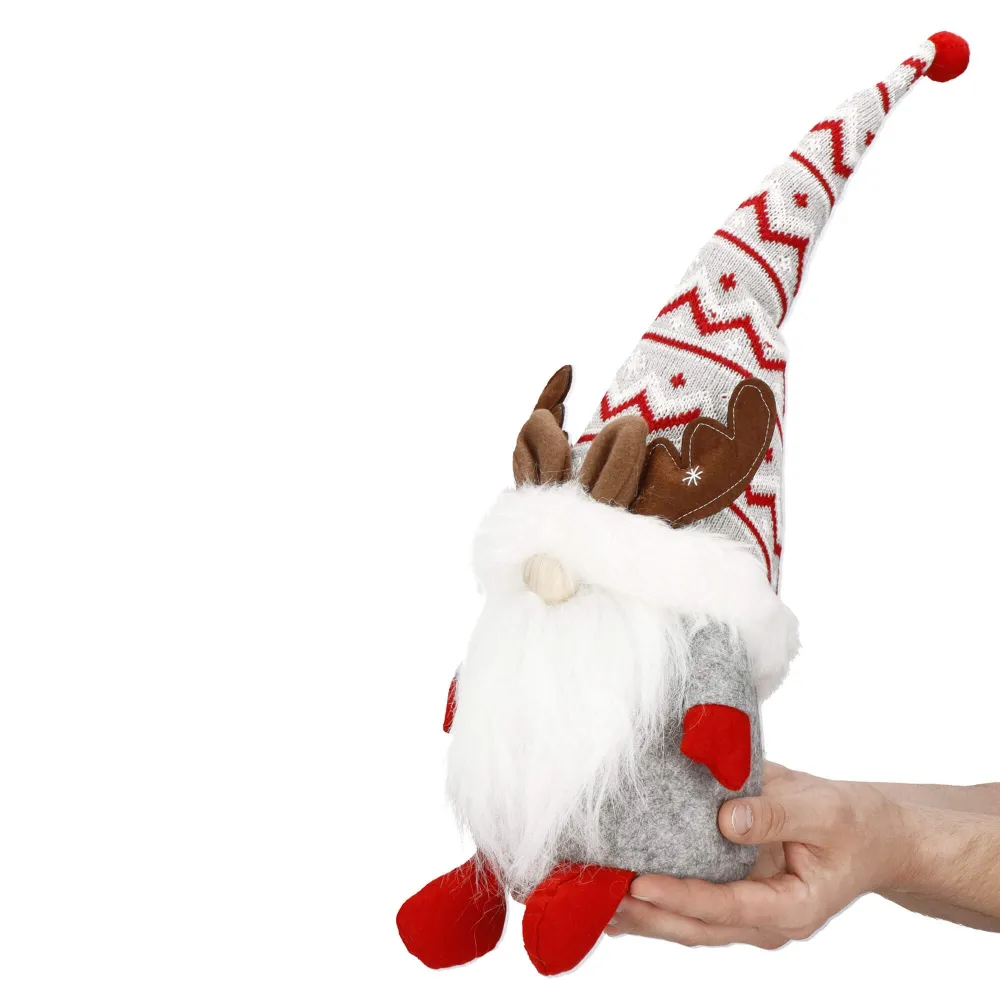 Plyšová dekorácia vianočného škriatka s výškou 50 cm. Stojaca/sediaca pozícia, stabilná základňa, detailne prevedený a zdobený obleček, so sobími parohmi, kvalitné a na dotyk príjemné materiály. Prekrásna vianočná dekorácia, ktorá sa stane ozdobou každého interiéru.