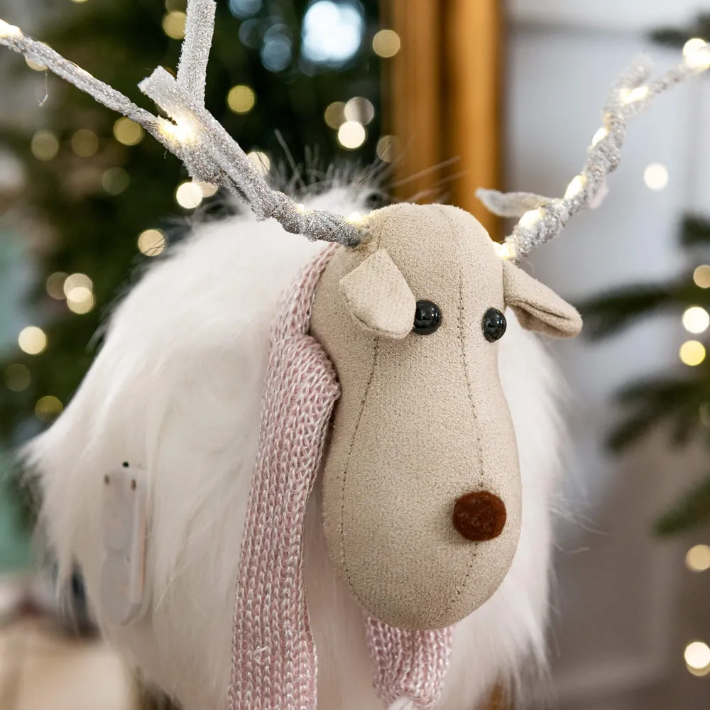 Vianočný sob svietiaci 48cm biely, vianočné dekorácie