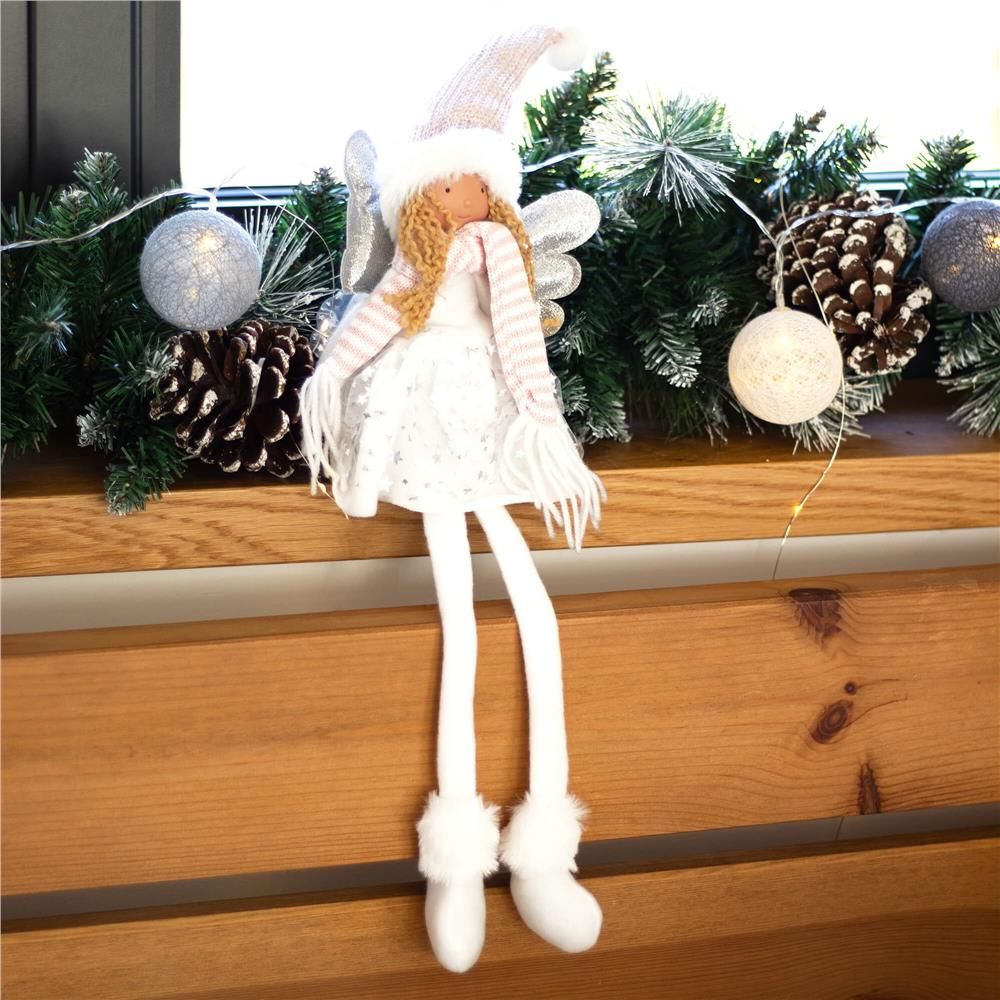 Plyšová dekorácia anjela s výškou 55 cm. Sediaca pozícia, strieborné krídla, svietiaci trblietavý obleček, dlhé nohy, kvalitné a na dotyk príjemný materiál. Prekrásna vianočná dekorácia, ktorá sa stane ozdobou každého interiéru.