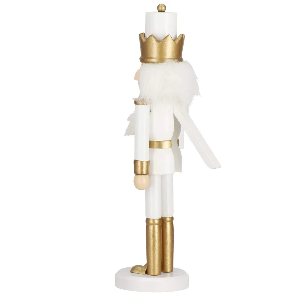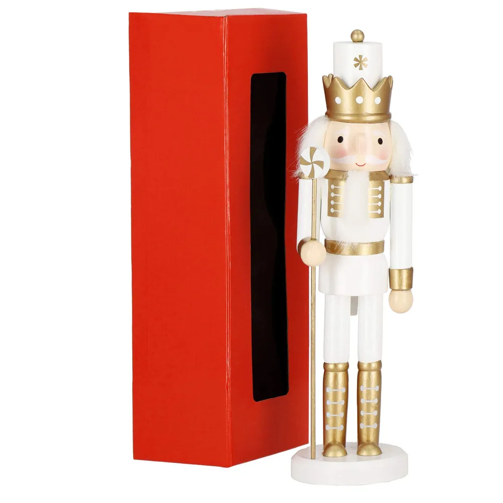 Drevená dekorácia kráľa so žezlom. Výška 30,5 cm, stojaca pozícia, stabilná základňa, ručne maľované drevo, pohyblivé ústa. Prekrásna vianočná dekorácia, ktorá sa stane ozdobou každého interiéru.