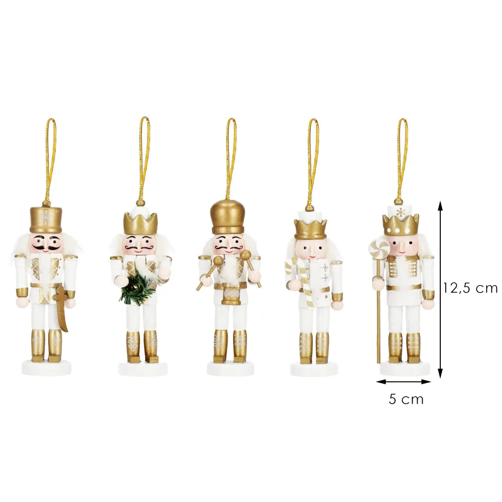 Sada 5ks originálnych vianočných ozdôb na zavesenie. V sade päť rôznych prevedení kozáckych vojakov v zbroji. Výška 12,5 cm, ručne maľované drevo, detailné zdobenie. Zadarmo pútko na zavesenie. Ideálne na výzdobu stromčekov alebo ako vianočné dekorácie.