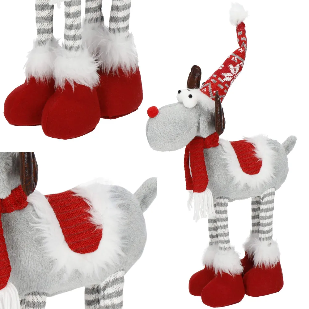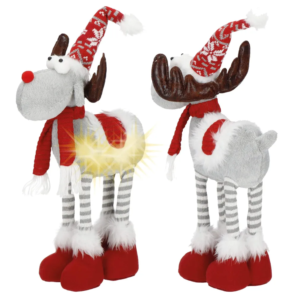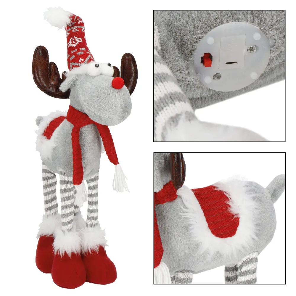 Svietiaca plyšová dekorácia nádherného soba na teleskopických nohách. Výška 61 cm, stojaca pozícia, stabilná základňa so spojenými topánkami, slušivý obleček, tvarovateľná čiapka. Kvalitný a na dotyk príjemný materiál. Prekrásna vianočná dekorácia, ktorá sa stane ozdobou každého interiéru.