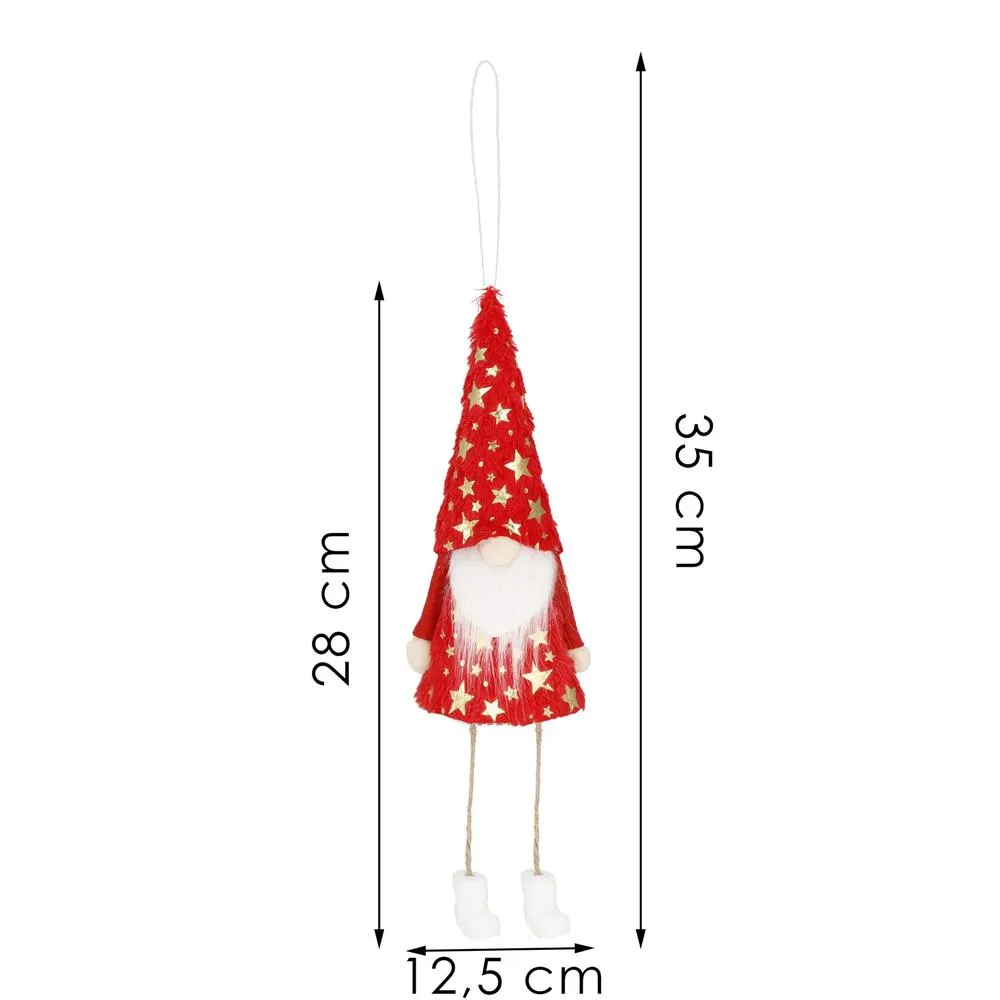 Originálna vianočná ozdoba na zavesenie v podobe škriatka Gnoma. Výška 35 cm, slušivý obleček, dlhý fúz, dlhé nohy na šnúrkach, kvalitný a na dotyk príjemný materiál. S pútkom na zavesenie. Ideálna ako ozdoba stromčeka alebo ako vianočná dekorácia.