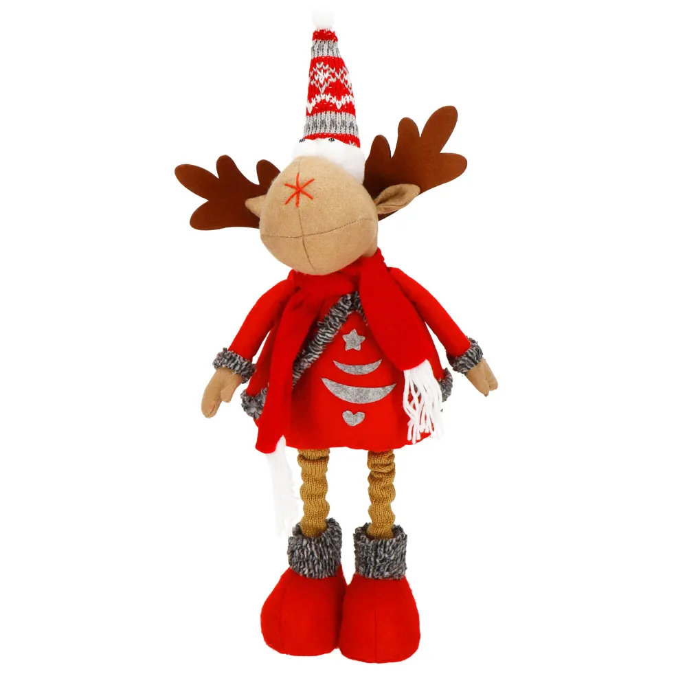 Plyšová dekorácia vianočného soba na teleskopických nohách . Plynulo nastaviteľná výška 49-65 cm. Stojaca pozícia, stabilná základňa so spojenými topánkami, detailne prevedený a zdobený obleček, kvalitný na dotyk príjemný materiál. Prekrásna vianočná dekorácia, ktorá sa stane ozdobou každého interiéru.