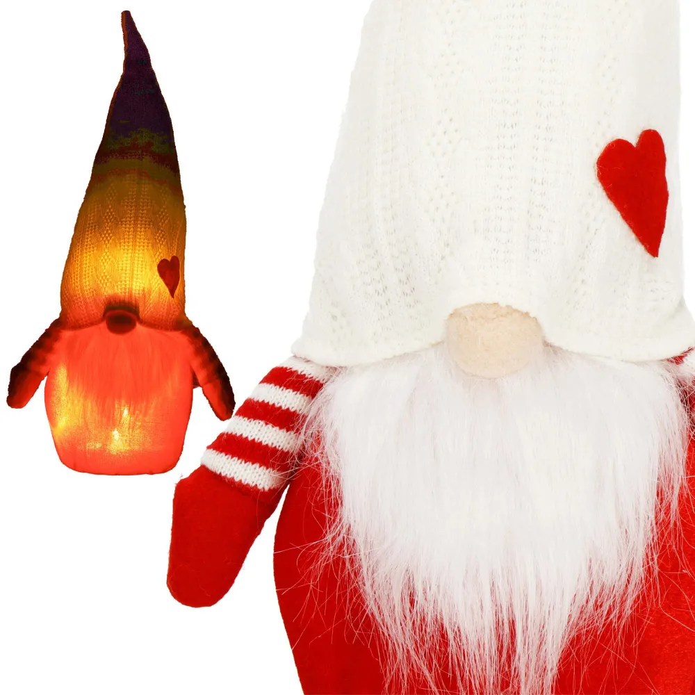 Škriatok GNOM s bielou čiapkou svietiacou 35cm, vianočné dekorácie