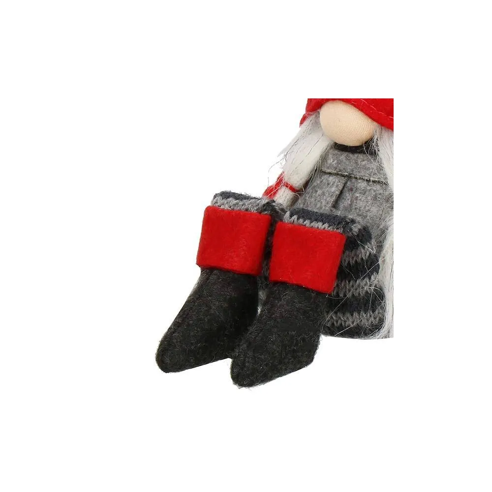 Plyšová dekorácia vianočného škriatka s výškou 38 cm. Sediaca pozícia, dlhé visiace nohy, vrkoče, slušivý obleček, stabilná základňa, kvalitný a na dotyk príjemný materiál. Prekrásna vianočná dekorácia, ktorá sa stane ozdobou každého interiéru.