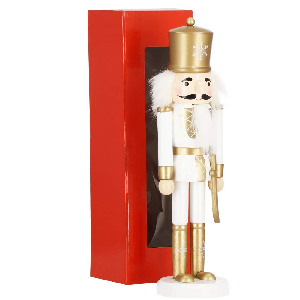 Luskáčik je vyrobený z ručne maľovaného dreva a prepracovaný do posledného detailu. Zdobí ho zlatá čiapka s vločkou, šable a dlhé fúzy. Zatiahnutím za fúzy alebo stlačením páčky na chrbte otvára a zatvára ústa.