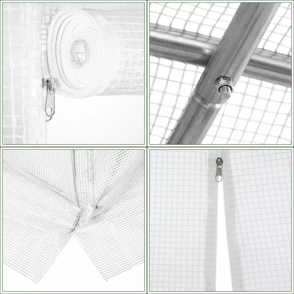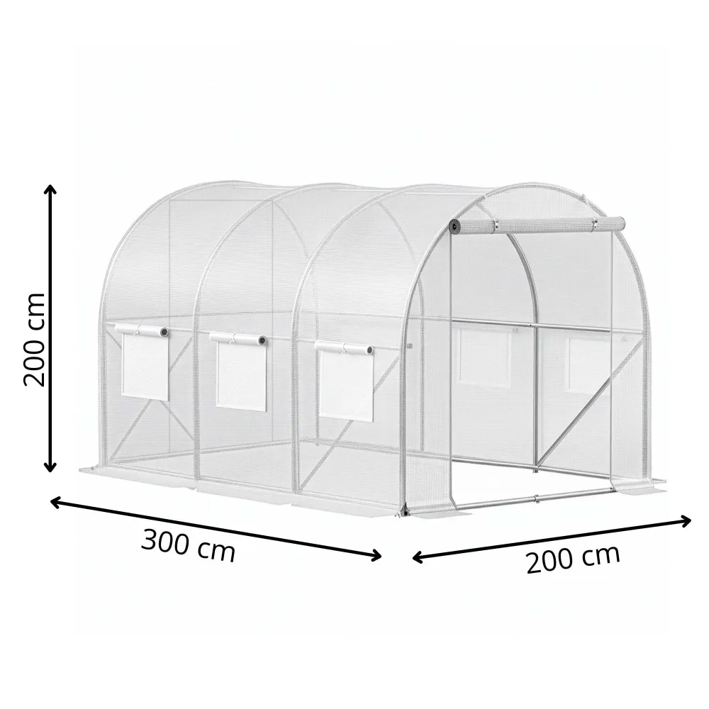 Praktické vetracie sieťované okná umožňujú optimálnu cirkuláciu vzduchu a reguláciu vlhkosti. Široký vchod s roletkou a zipsom uľahčuje prístup do fóliovníka, zatiaľ čo obvodové kotvy do zeme zaisťujú pevné uchytenie k podkladu. Tento fóliovník je skvelým pomocníkom pre každého záhradkára, ktorý chce mať zdravú a bohatú úrodu po celú sezónu.