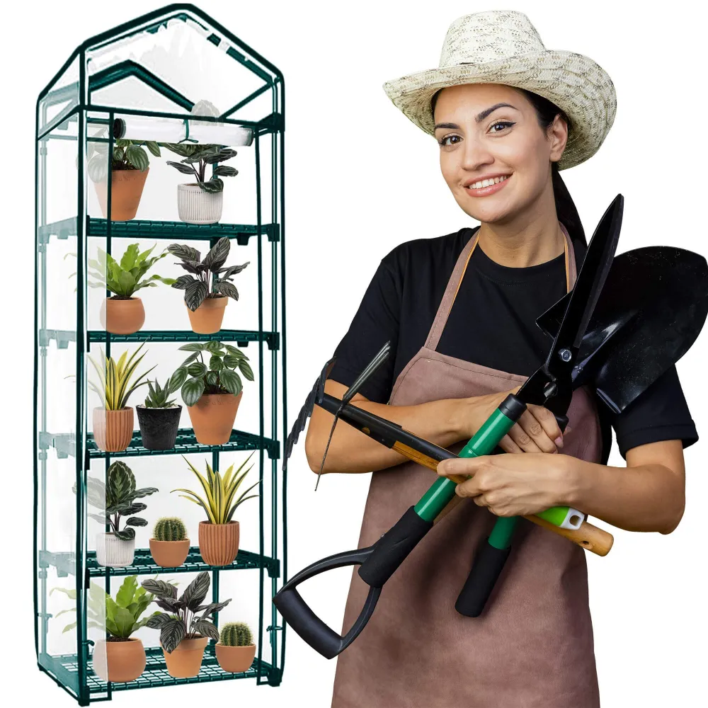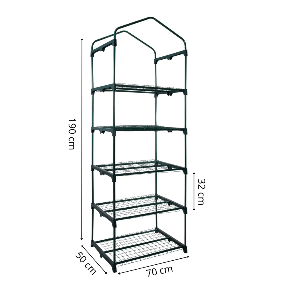 Záhradný fóliovník 70x50x190 cm 5 políc SPRINGOS GT0007 je ideálnym riešením na pestovanie rastlín na menšiu záhradu alebo balkón. Vďaka pevnej a odolnej konštrukcii so zosilnením v podobe 5 drôtených políc poskytuje dostatok priestoru na usporiadanie sadeníc, byliniek či zeleniny. Odolná fólia 130 g/m² typ UV4 chráni rastliny pred škodlivým UV žiarením, dažďom aj vetrom, čím vytvára optimálne podmienky pre rast a vývoj.