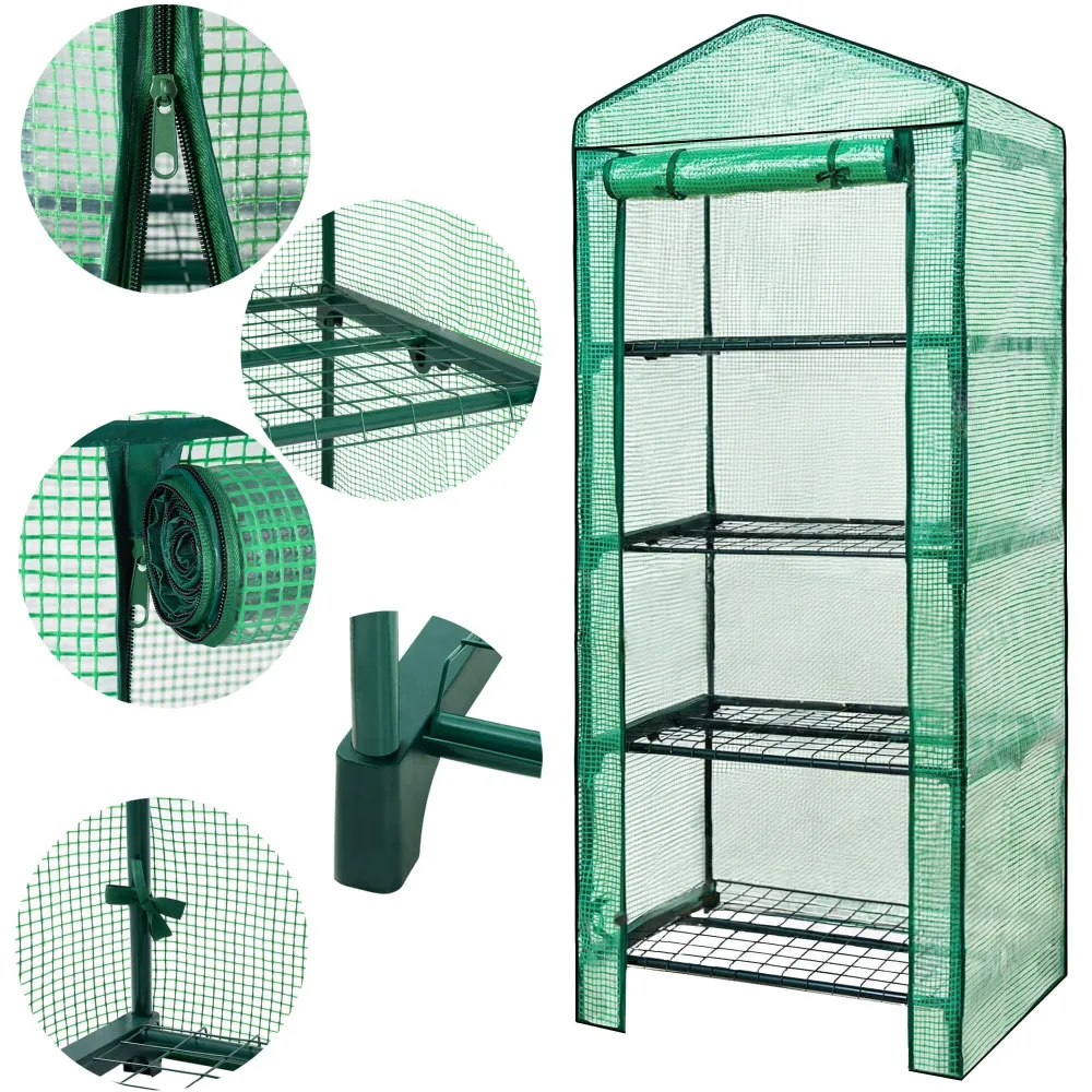 Záhradný fóliovník 70x50x160 cm 4 polica SPRINGOS GT0008 je ideálnym riešením na pestovanie rastlín na menšiu záhradu alebo balkón. Vďaka pevnej a odolnej konštrukcii so zosilnením v podobe 4 drôtených políc poskytuje dostatok priestoru na usporiadanie sadeníc, byliniek či zeleniny. Odolná fólia 130 g/m² typ UV4 chráni rastliny pred škodlivým UV žiarením, dažďom aj vetrom, čím vytvára optimálne podmienky pre rast a vývoj.