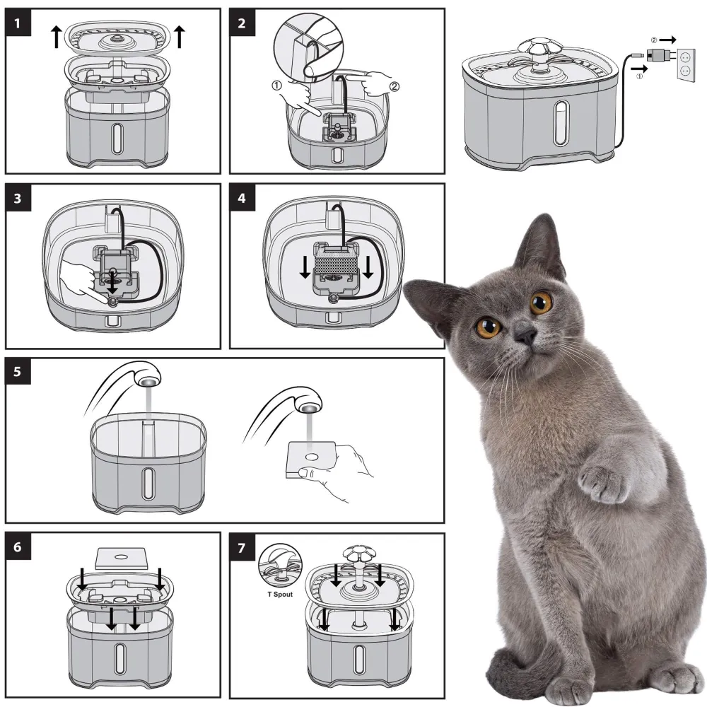 Fontána je vybavená 3-stupňovou filtráciou a vymeniteľným filtrom, ktorý neustále čistí vodu a odstraňuje nečistoty, chlpy a zápach. Vďaka tichému chodu nebude rušiť ani v noci, čo oceníte najmä v pokojných domácnostiach. Bezpečné USB napájanie s nízkou spotrebou energie šetrí vaše náklady, a zároveň je fontána šetrná k životnému prostrediu. Modré LED podsvietenie dodáva fontáne moderný vzhľad a zaisťuje, že ju vaši miláčikovia ľahko nájdu aj v tme.
