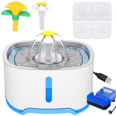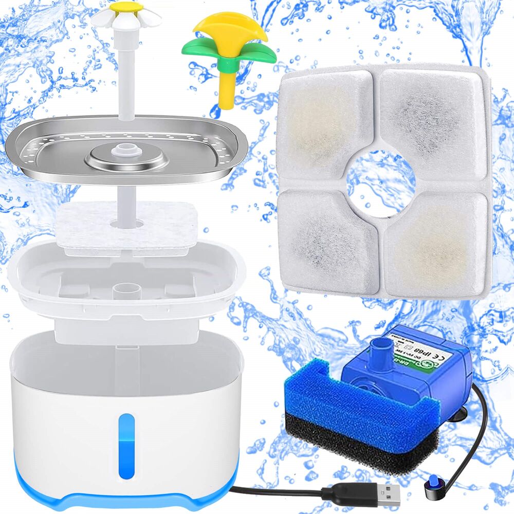 Automatická vodná fontána s dvoma vymeniteľnými tryskami, ktoré vytvárajú jemný prúd vody. Vďaka 3-stupňovej filtrácii a vymeniteľnému filtru zaisťuje vždy čistú vodu. Fontána funguje ticho, má bezpečné USB napájanie s nízkou spotrebou energie a štýlové modré LED podsvietenie. Certifikácia IP68 a stabilná základňa zaručujú bezpečnosť a pevné umiestnenie.